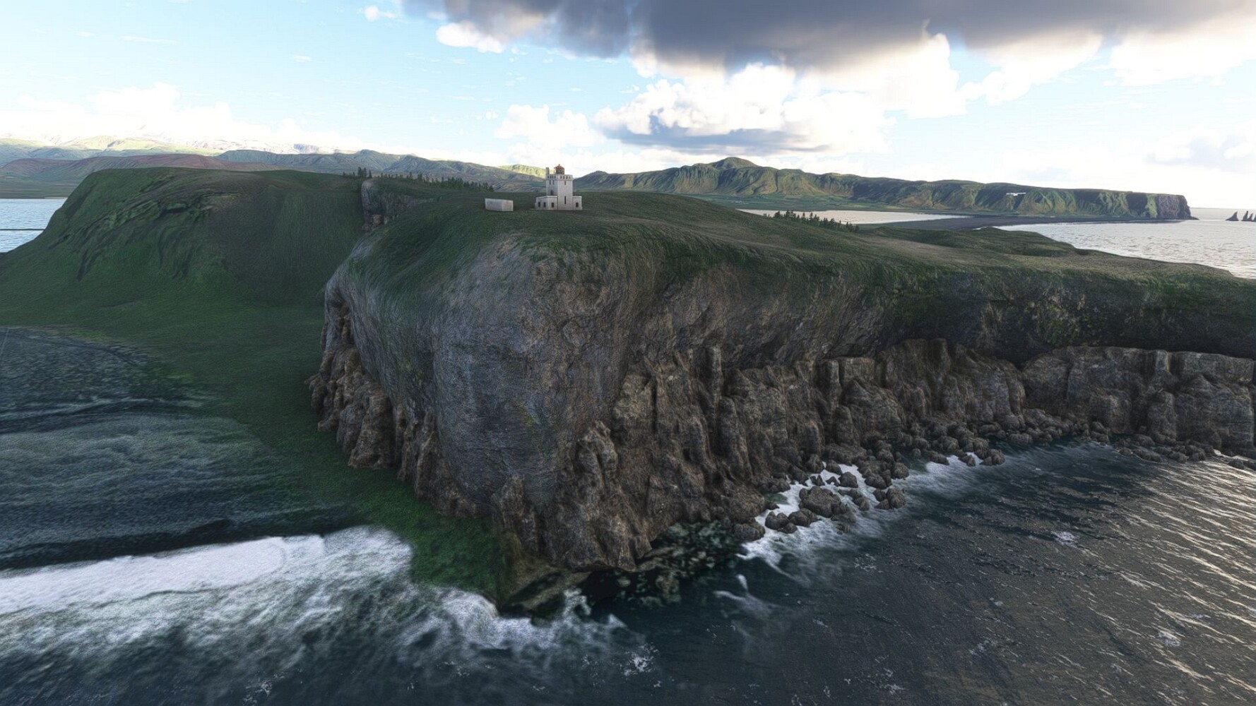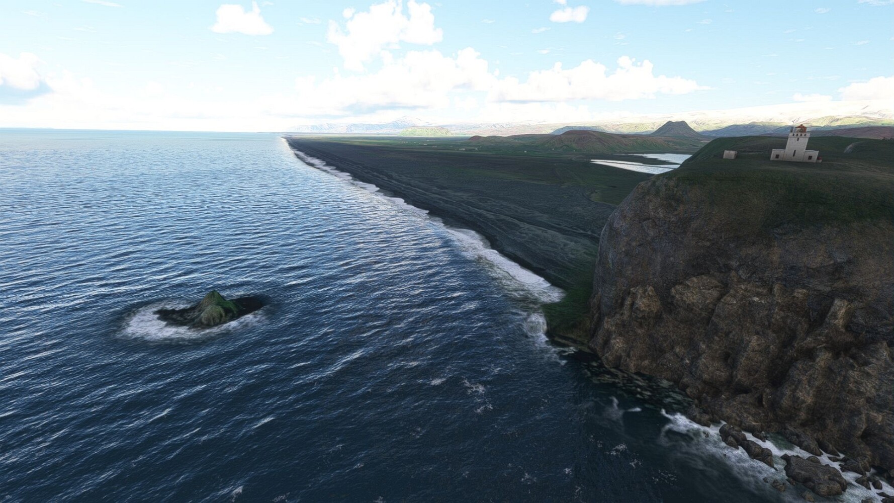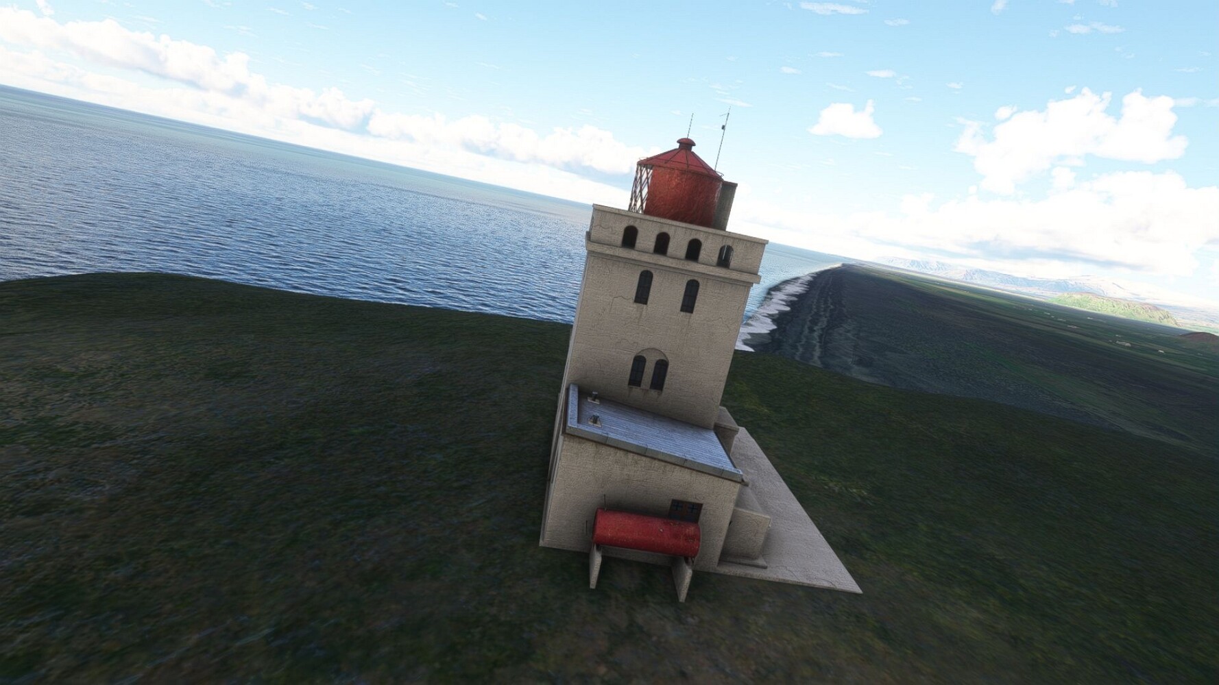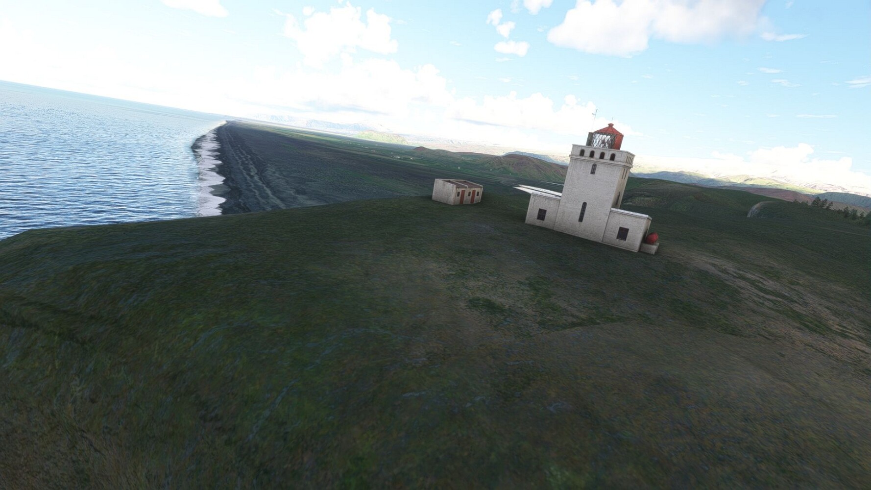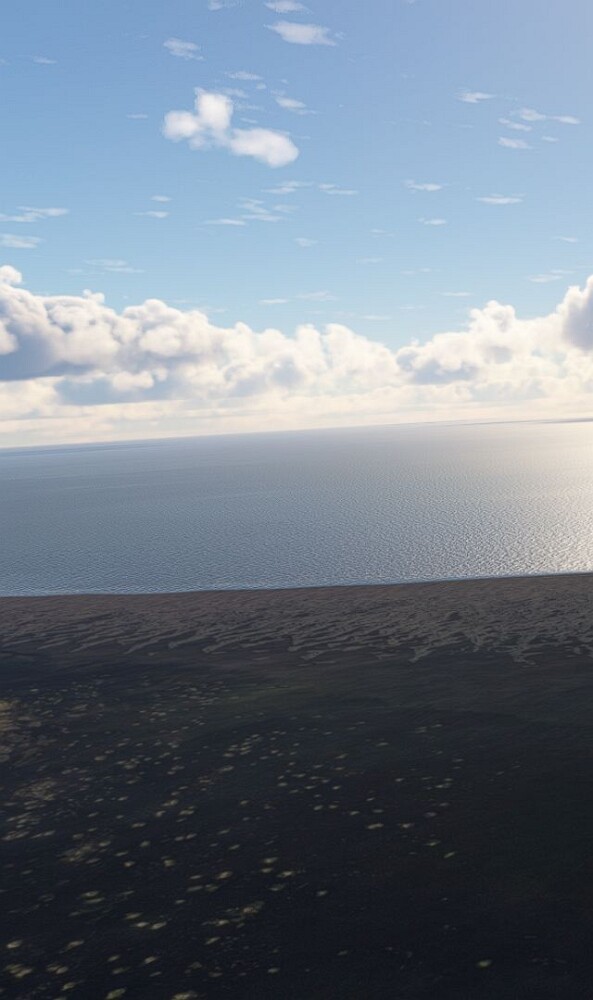 Am nächsten Morgen gings weiter von Vestmannaeyjabaer (BIVM) wieder zurück zur Südküste und weiter gen Osten. da muss irgendwo die DC3 liegen... An der Küste wurde im großen Stil aufgeforstet oder mit Büschen begrünt? Hier wirds was luftiger Und hier ist alles öde. Der übliche Bewuchs :-) Anflug auf die Klippe von Dyrhólaey... mit dem Leuchtturm Nummer 12, der wieder aus dem Haus Asobo stammt. Nett! Wirklich eine beeindruckende Lage. Hier endet nun die weiten Schwemmebenen und die Berge schieben sich an die Küste. Die Vulkanreste von Hálsanefshellir Sehr beeindruckend Erstmal kein Leuchtfeuer in Sicht. Aber neue Mündungen und neue Schwemm-Ebenen Gewaltig Und da habe ich wieder einen entdeckt. Die Nummer 13! Verloren in der Weite, der Alvidruhamrar Leuchtturm Liegt wirklich einsam. Es folgen die gewaltigen Ebenen die die Kettla hier hinterlassen hat. windgepeitscht Phantastische Muster von hier oben! Leider gibts hier manch unschöner AI-Flusslauf Aber es geht auch besser, allerdings sind die Muster nicht als Wasser markiert, schade... Grandios Wieder ein Fels im Nirgendwo: Ingólfshöfði Das Kap ist nur bei Ebbe zu erreichen, so sagt es zumindest die Wiki. Der Leuchtturm stammt aus dem Jahr 1916. Wieder ein eher klassisches Modell, dieses Mal von Garf. Sehr schön! Da passt auch die Nummer 14! Und weiter gehts Wir nähern uns Fjallsjökull Eisschollen... Auf dem Parkplatz ist es schon was eng... Wirklich tolle Bergformen Und grandiose Farben... Eine neue Schwemmebene Höfn ist erreicht, hier findet sich die Nummer 15. Ein kleiner Turm, der die Einfahrt in die flache Bucht markiert. Hier ist leider viel von dem was Wasser sein sollte im Flusi als Land dargestellt. Wieder sehr schade. Der kleine Flugplatz liegt hinter dem Städtchen. Der Tank war schon wieder leer, die Auster hat einen gewaltigen Durst nach Kerosin. Teil 02Teil 04