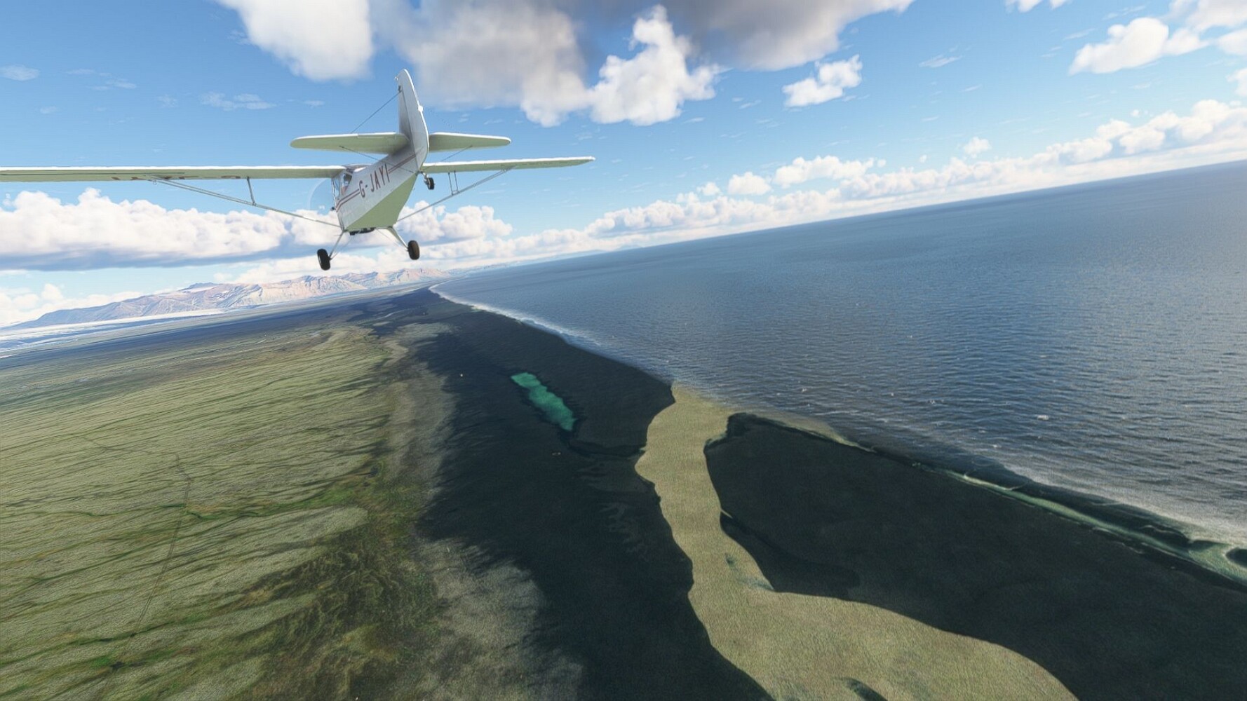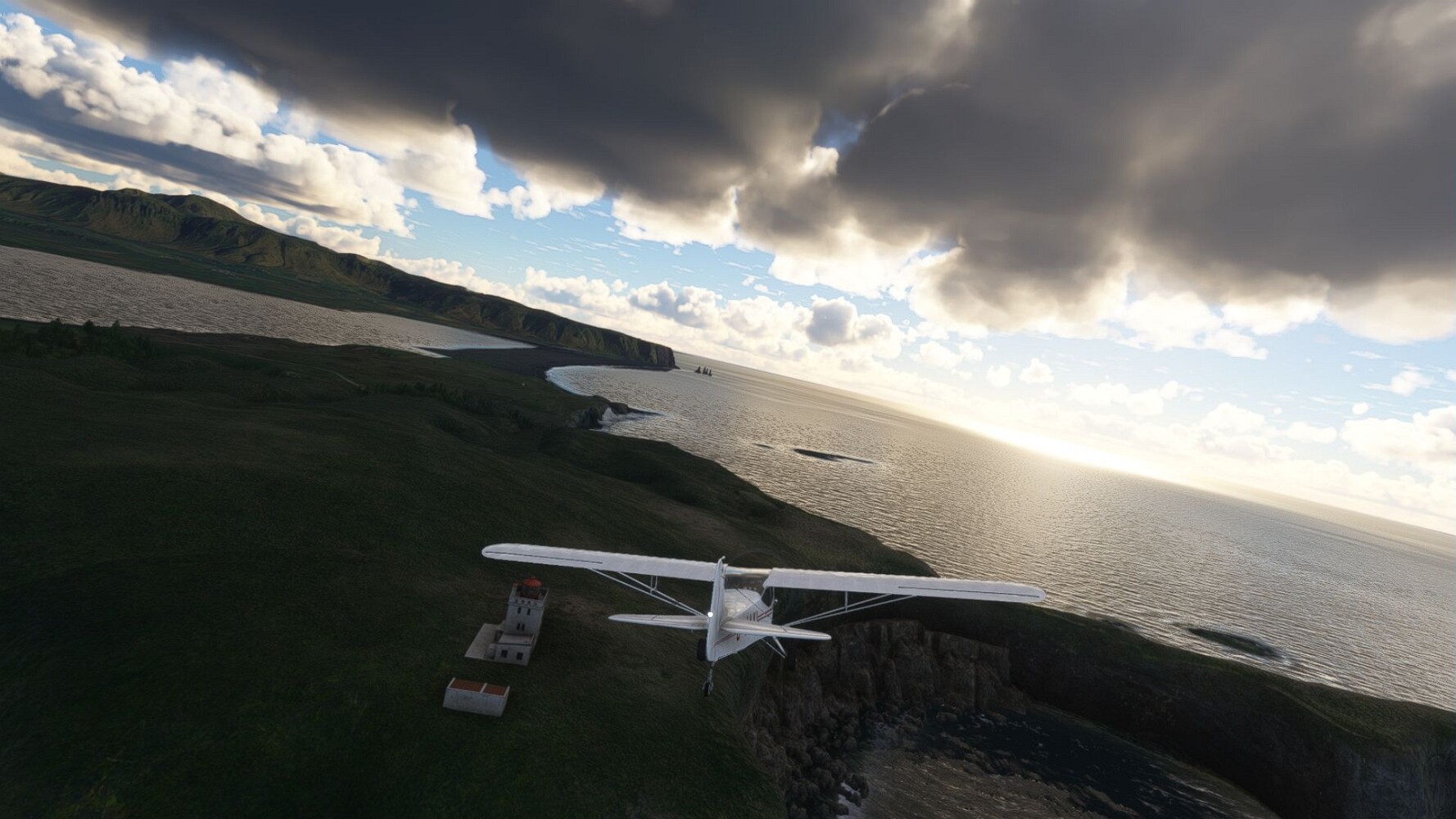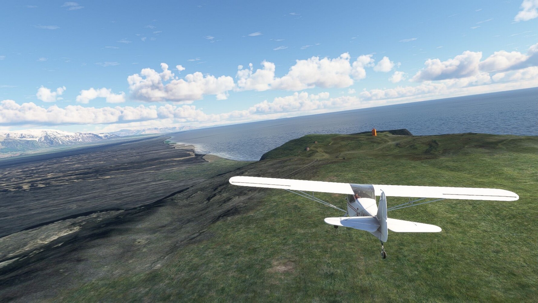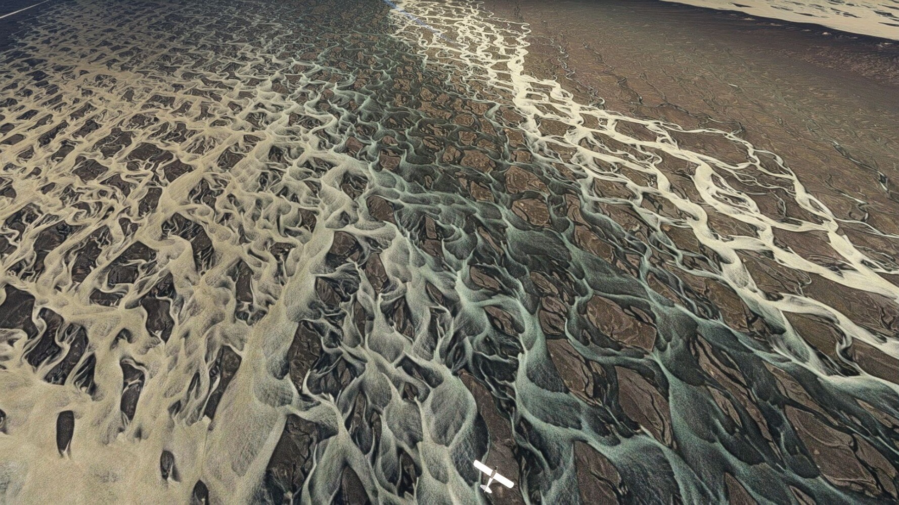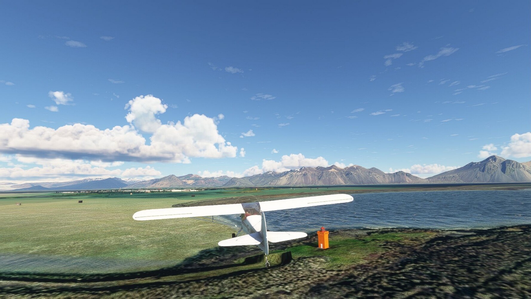 Am nächsten Morgen gings weiter von Vestmannaeyjabaer (BIVM) wieder zurück zur Südküste und weiter gen Osten. da muss irgendwo die DC3 liegen... An der Küste wurde im großen Stil aufgeforstet oder mit Büschen begrünt? Hier wirds was luftiger Und hier ist alles öde. Der übliche Bewuchs :-) Anflug auf die Klippe von Dyrhólaey... mit dem Leuchtturm Nummer 12, der wieder aus dem Haus Asobo stammt. Nett! Wirklich eine beeindruckende Lage. Hier endet nun die weiten Schwemmebenen und die Berge schieben sich an die Küste. Die Vulkanreste von Hálsanefshellir Sehr beeindruckend Erstmal kein Leuchtfeuer in Sicht. Aber neue Mündungen und neue Schwemm-Ebenen Gewaltig Und da habe ich wieder einen entdeckt. Die Nummer 13! Verloren in der Weite, der Alvidruhamrar Leuchtturm Liegt wirklich einsam. Es folgen die gewaltigen Ebenen die die Kettla hier hinterlassen hat. windgepeitscht Phantastische Muster von hier oben! Leider gibts hier manch unschöner AI-Flusslauf Aber es geht auch besser, allerdings sind die Muster nicht als Wasser markiert, schade... Grandios Wieder ein Fels im Nirgendwo: Ingólfshöfði Das Kap ist nur bei Ebbe zu erreichen, so sagt es zumindest die Wiki. Der Leuchtturm stammt aus dem Jahr 1916. Wieder ein eher klassisches Modell, dieses Mal von Garf. Sehr schön! Da passt auch die Nummer 14! Und weiter gehts Wir nähern uns Fjallsjökull Eisschollen... Auf dem Parkplatz ist es schon was eng... Wirklich tolle Bergformen Und grandiose Farben... Eine neue Schwemmebene Höfn ist erreicht, hier findet sich die Nummer 15. Ein kleiner Turm, der die Einfahrt in die flache Bucht markiert. Hier ist leider viel von dem was Wasser sein sollte im Flusi als Land dargestellt. Wieder sehr schade. Der kleine Flugplatz liegt hinter dem Städtchen. Der Tank war schon wieder leer, die Auster hat einen gewaltigen Durst nach Kerosin. Teil 02Teil 04