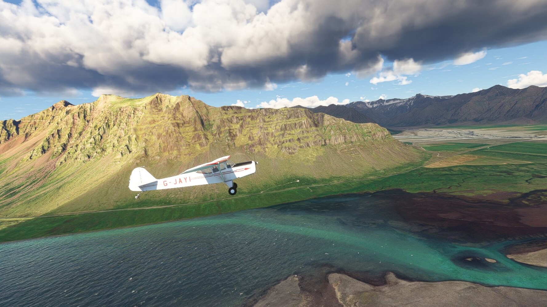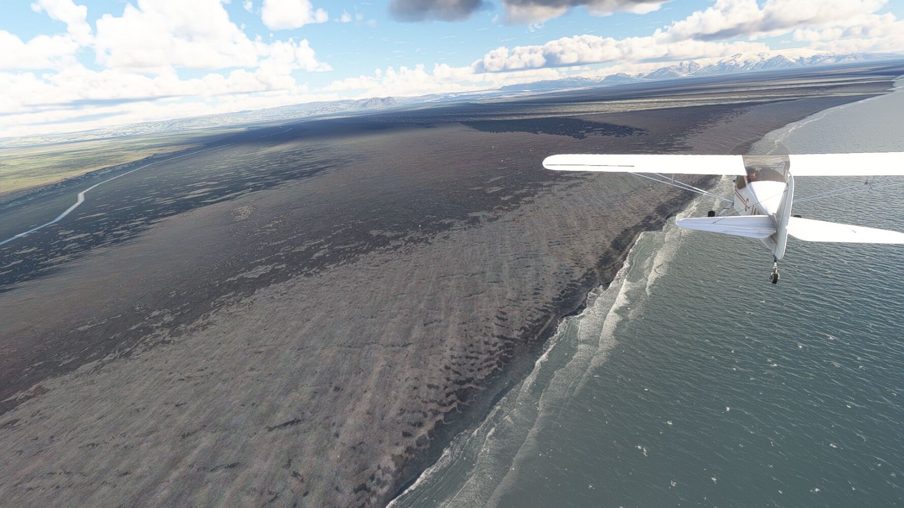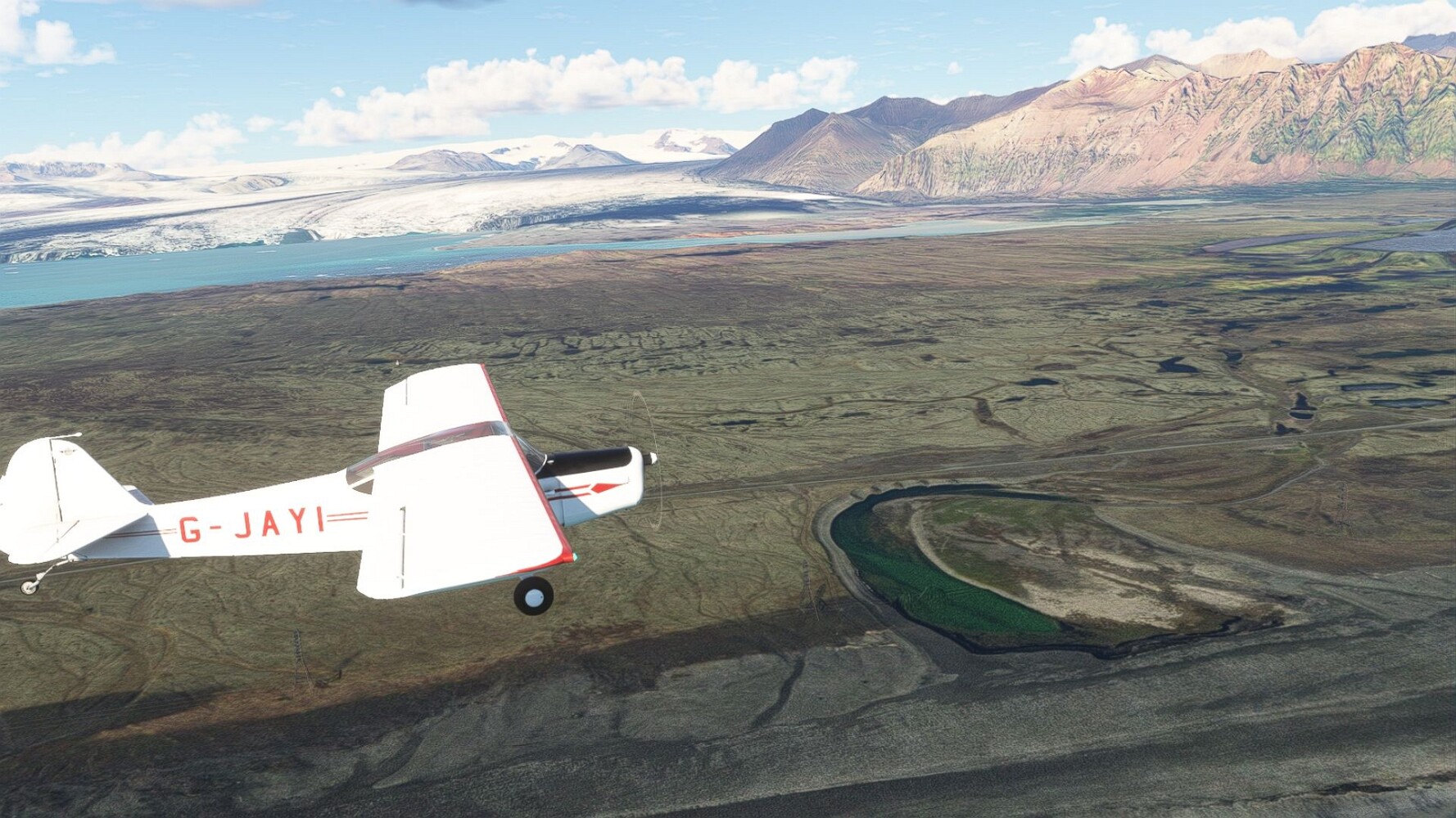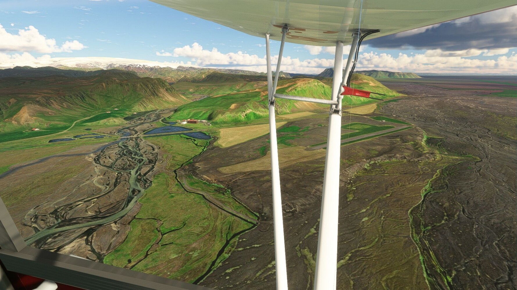 Am nächsten Morgen gings weiter von Vestmannaeyjabaer (BIVM) wieder zurück zur Südküste und weiter gen Osten. da muss irgendwo die DC3 liegen... An der Küste wurde im großen Stil aufgeforstet oder mit Büschen begrünt? Hier wirds was luftiger Und hier ist alles öde. Der übliche Bewuchs :-) Anflug auf die Klippe von Dyrhólaey... mit dem Leuchtturm Nummer 12, der wieder aus dem Haus Asobo stammt. Nett! Wirklich eine beeindruckende Lage. Hier endet nun die weiten Schwemmebenen und die Berge schieben sich an die Küste. Die Vulkanreste von Hálsanefshellir Sehr beeindruckend Erstmal kein Leuchtfeuer in Sicht. Aber neue Mündungen und neue Schwemm-Ebenen Gewaltig Und da habe ich wieder einen entdeckt. Die Nummer 13! Verloren in der Weite, der Alvidruhamrar Leuchtturm Liegt wirklich einsam. Es folgen die gewaltigen Ebenen die die Kettla hier hinterlassen hat. windgepeitscht Phantastische Muster von hier oben! Leider gibts hier manch unschöner AI-Flusslauf Aber es geht auch besser, allerdings sind die Muster nicht als Wasser markiert, schade... Grandios Wieder ein Fels im Nirgendwo: Ingólfshöfði Das Kap ist nur bei Ebbe zu erreichen, so sagt es zumindest die Wiki. Der Leuchtturm stammt aus dem Jahr 1916. Wieder ein eher klassisches Modell, dieses Mal von Garf. Sehr schön! Da passt auch die Nummer 14! Und weiter gehts Wir nähern uns Fjallsjökull Eisschollen... Auf dem Parkplatz ist es schon was eng... Wirklich tolle Bergformen Und grandiose Farben... Eine neue Schwemmebene Höfn ist erreicht, hier findet sich die Nummer 15. Ein kleiner Turm, der die Einfahrt in die flache Bucht markiert. Hier ist leider viel von dem was Wasser sein sollte im Flusi als Land dargestellt. Wieder sehr schade. Der kleine Flugplatz liegt hinter dem Städtchen. Der Tank war schon wieder leer, die Auster hat einen gewaltigen Durst nach Kerosin. Teil 02Teil 04
