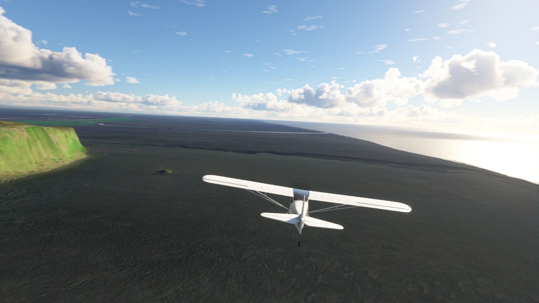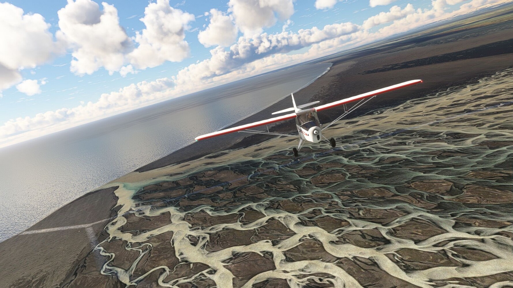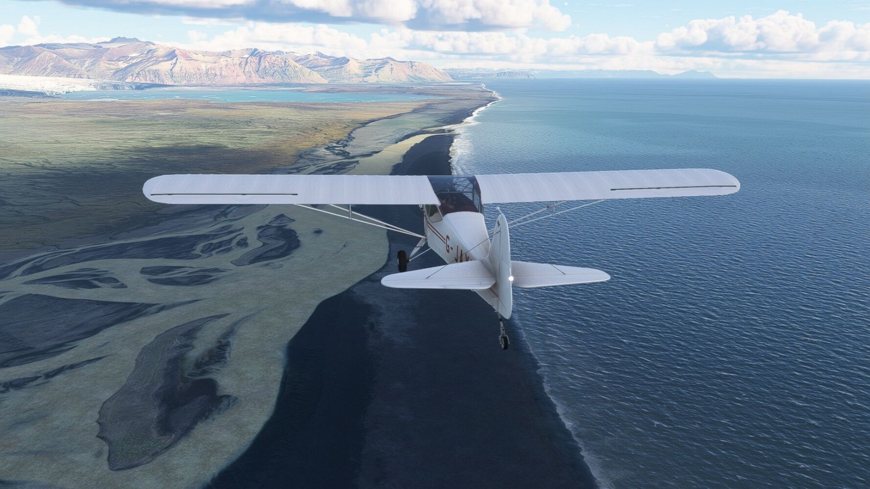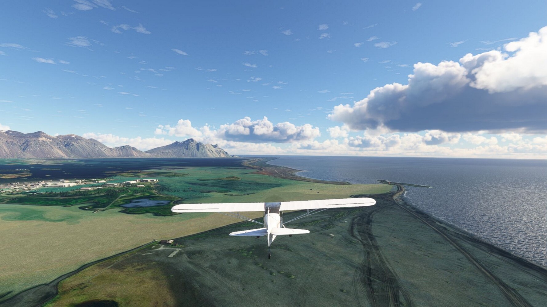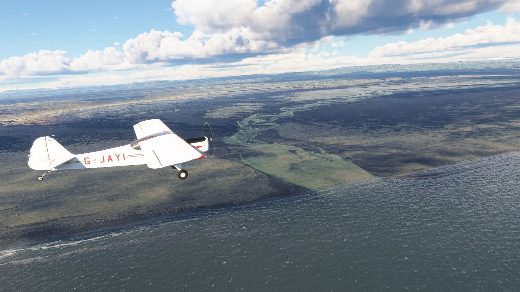Am nächsten Morgen gings weiter von Vestmannaeyjabaer (BIVM) wieder zurück zur Südküste und weiter gen Osten. da muss irgendwo die DC3 liegen... An der Küste wurde im großen Stil aufgeforstet oder mit Büschen begrünt? Hier wirds was luftiger Und hier ist alles öde. Der übliche Bewuchs :-) Anflug auf die Klippe von Dyrhólaey... mit dem Leuchtturm Nummer 12, der wieder aus dem Haus Asobo stammt. Nett! Wirklich eine beeindruckende Lage. Hier endet nun die weiten Schwemmebenen und die Berge schieben sich an die Küste. Die Vulkanreste von Hálsanefshellir Sehr beeindruckend Erstmal kein Leuchtfeuer in Sicht. Aber neue Mündungen und neue Schwemm-Ebenen Gewaltig Und da habe ich wieder einen entdeckt. Die Nummer 13! Verloren in der Weite, der Alvidruhamrar Leuchtturm Liegt wirklich einsam. Es folgen die gewaltigen Ebenen die die Kettla hier hinterlassen hat. windgepeitscht Phantastische Muster von hier oben! Leider gibts hier manch unschöner AI-Flusslauf Aber es geht auch besser, allerdings sind die Muster nicht als Wasser markiert, schade... Grandios Wieder ein Fels im Nirgendwo: Ingólfshöfði Das Kap ist nur bei Ebbe zu erreichen, so sagt es zumindest die Wiki. Der Leuchtturm stammt aus dem Jahr 1916. Wieder ein eher klassisches Modell, dieses Mal von Garf. Sehr schön! Da passt auch die Nummer 14! Und weiter gehts Wir nähern uns Fjallsjökull Eisschollen... Auf dem Parkplatz ist es schon was eng... Wirklich tolle Bergformen Und grandiose Farben... Eine neue Schwemmebene Höfn ist erreicht, hier findet sich die Nummer 15. Ein kleiner Turm, der die Einfahrt in die flache Bucht markiert. Hier ist leider viel von dem was Wasser sein sollte im Flusi als Land dargestellt. Wieder sehr schade. Der kleine Flugplatz liegt hinter dem Städtchen. Der Tank war schon wieder leer, die Auster hat einen gewaltigen Durst nach Kerosin. Teil 02Teil 04