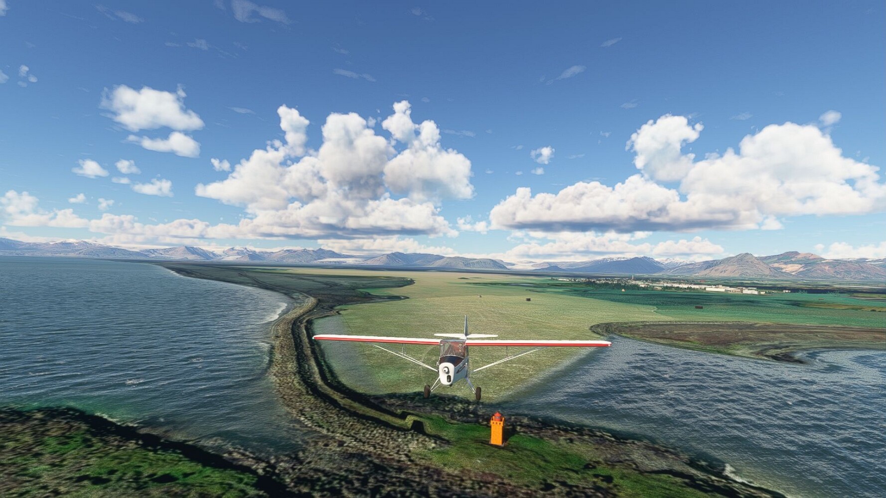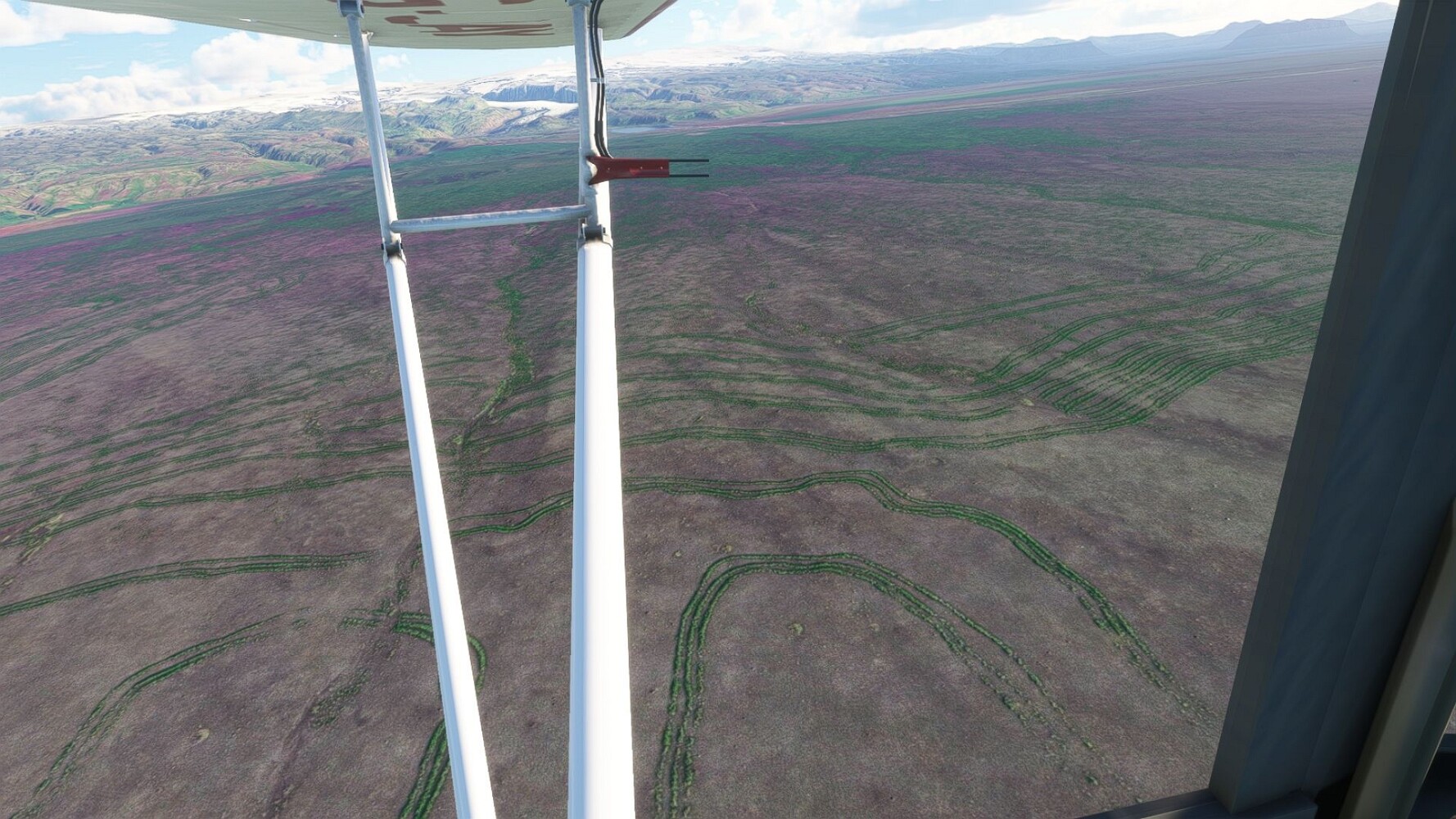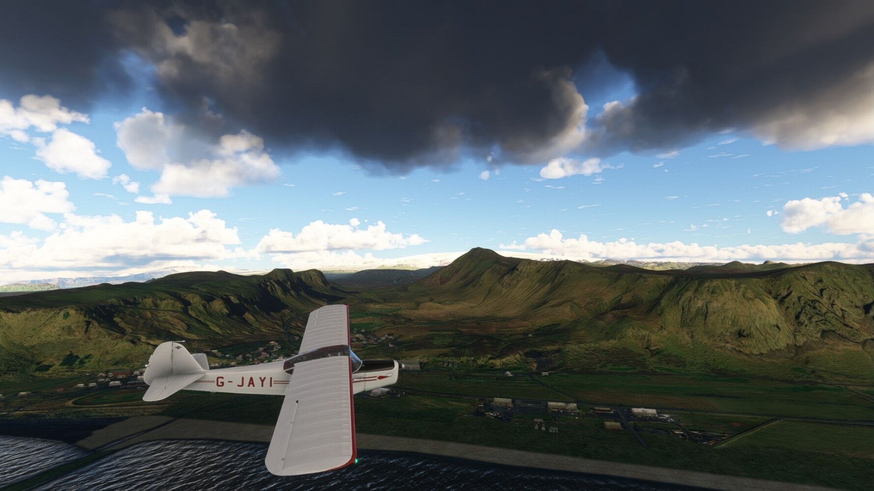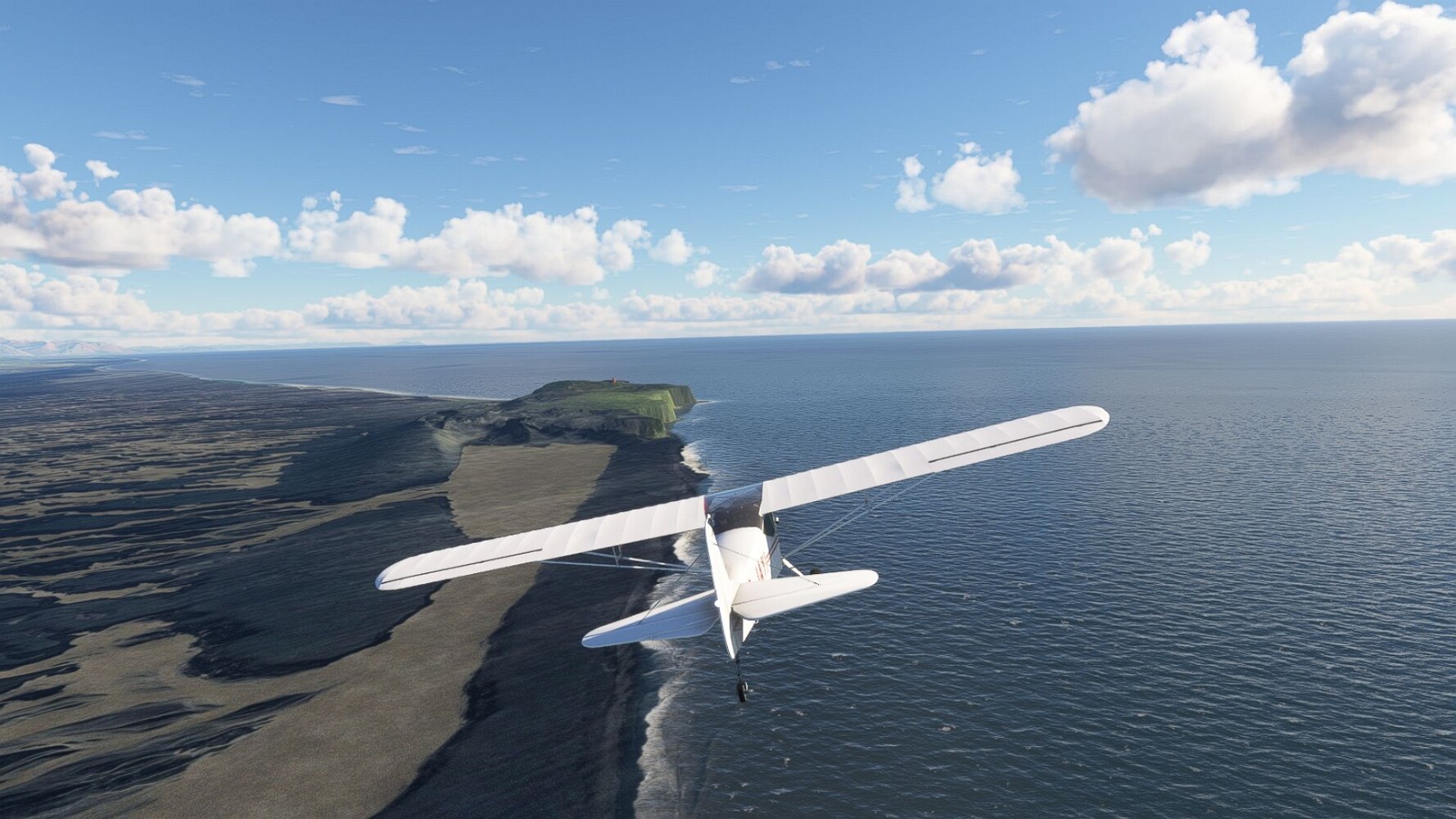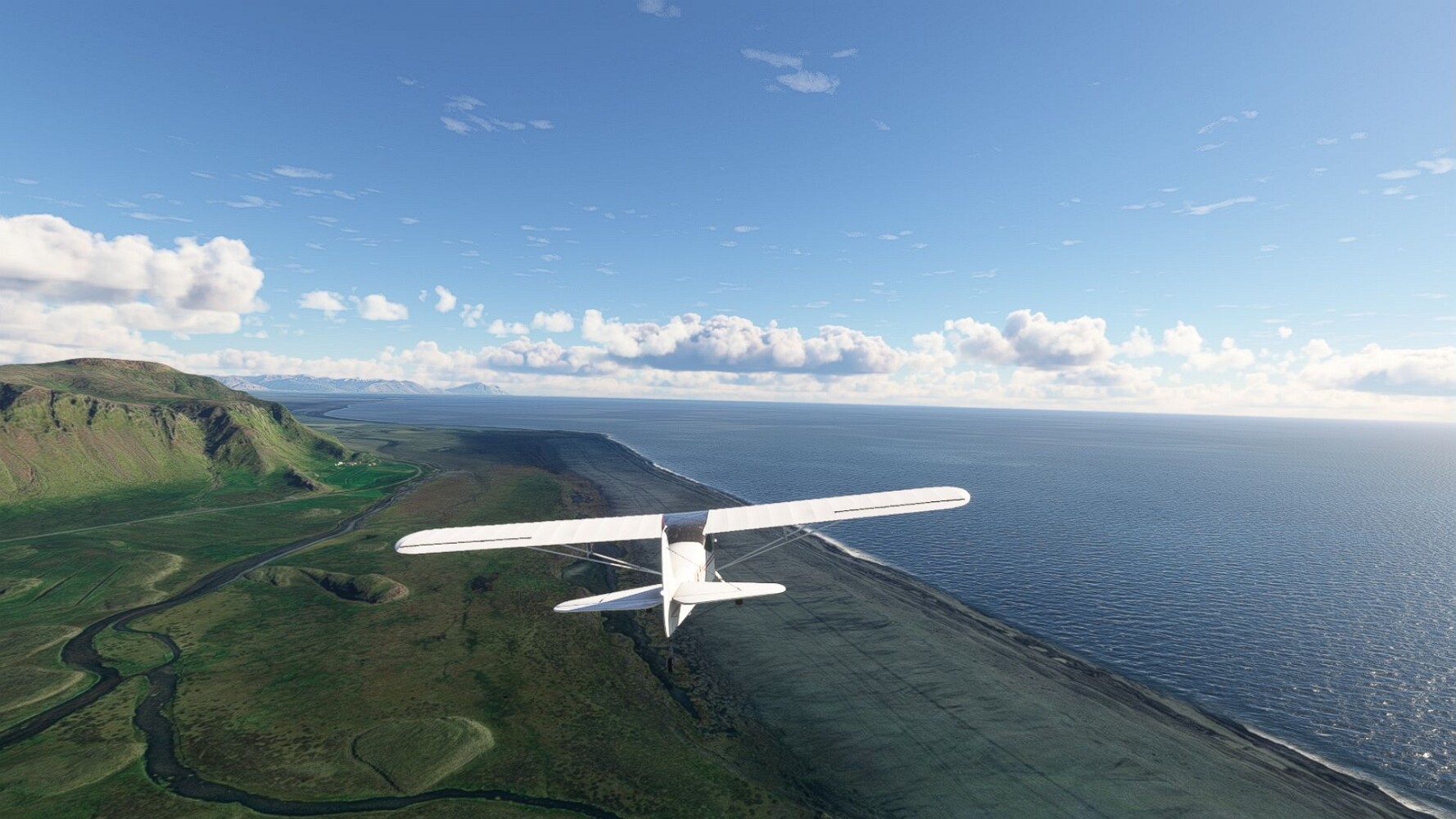 Am nächsten Morgen gings weiter von Vestmannaeyjabaer (BIVM) wieder zurück zur Südküste und weiter gen Osten. da muss irgendwo die DC3 liegen... An der Küste wurde im großen Stil aufgeforstet oder mit Büschen begrünt? Hier wirds was luftiger Und hier ist alles öde. Der übliche Bewuchs :-) Anflug auf die Klippe von Dyrhólaey... mit dem Leuchtturm Nummer 12, der wieder aus dem Haus Asobo stammt. Nett! Wirklich eine beeindruckende Lage. Hier endet nun die weiten Schwemmebenen und die Berge schieben sich an die Küste. Die Vulkanreste von Hálsanefshellir Sehr beeindruckend Erstmal kein Leuchtfeuer in Sicht. Aber neue Mündungen und neue Schwemm-Ebenen Gewaltig Und da habe ich wieder einen entdeckt. Die Nummer 13! Verloren in der Weite, der Alvidruhamrar Leuchtturm Liegt wirklich einsam. Es folgen die gewaltigen Ebenen die die Kettla hier hinterlassen hat. windgepeitscht Phantastische Muster von hier oben! Leider gibts hier manch unschöner AI-Flusslauf Aber es geht auch besser, allerdings sind die Muster nicht als Wasser markiert, schade... Grandios Wieder ein Fels im Nirgendwo: Ingólfshöfði Das Kap ist nur bei Ebbe zu erreichen, so sagt es zumindest die Wiki. Der Leuchtturm stammt aus dem Jahr 1916. Wieder ein eher klassisches Modell, dieses Mal von Garf. Sehr schön! Da passt auch die Nummer 14! Und weiter gehts Wir nähern uns Fjallsjökull Eisschollen... Auf dem Parkplatz ist es schon was eng... Wirklich tolle Bergformen Und grandiose Farben... Eine neue Schwemmebene Höfn ist erreicht, hier findet sich die Nummer 15. Ein kleiner Turm, der die Einfahrt in die flache Bucht markiert. Hier ist leider viel von dem was Wasser sein sollte im Flusi als Land dargestellt. Wieder sehr schade. Der kleine Flugplatz liegt hinter dem Städtchen. Der Tank war schon wieder leer, die Auster hat einen gewaltigen Durst nach Kerosin. Teil 02Teil 04