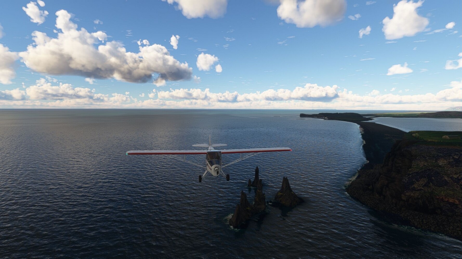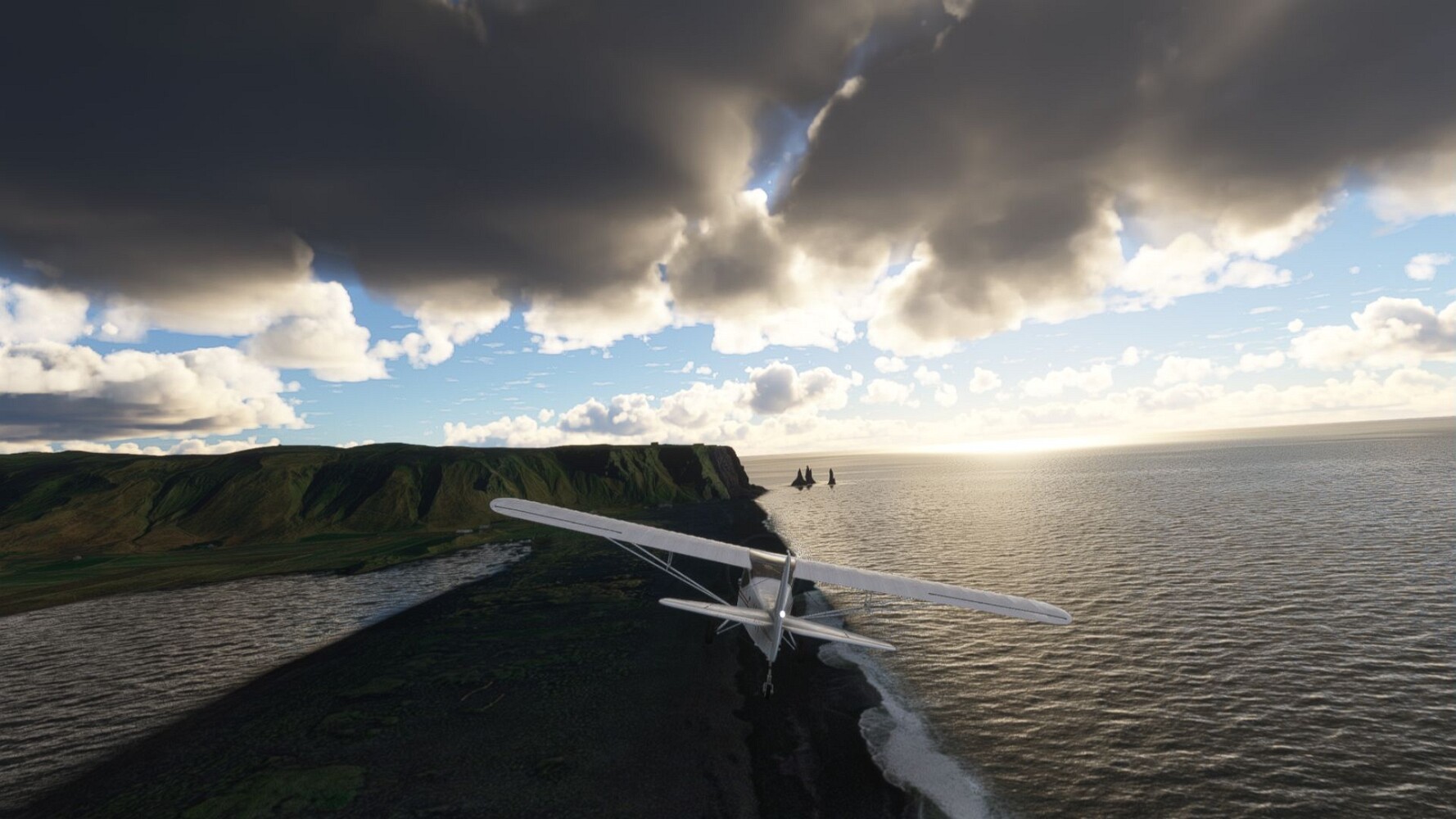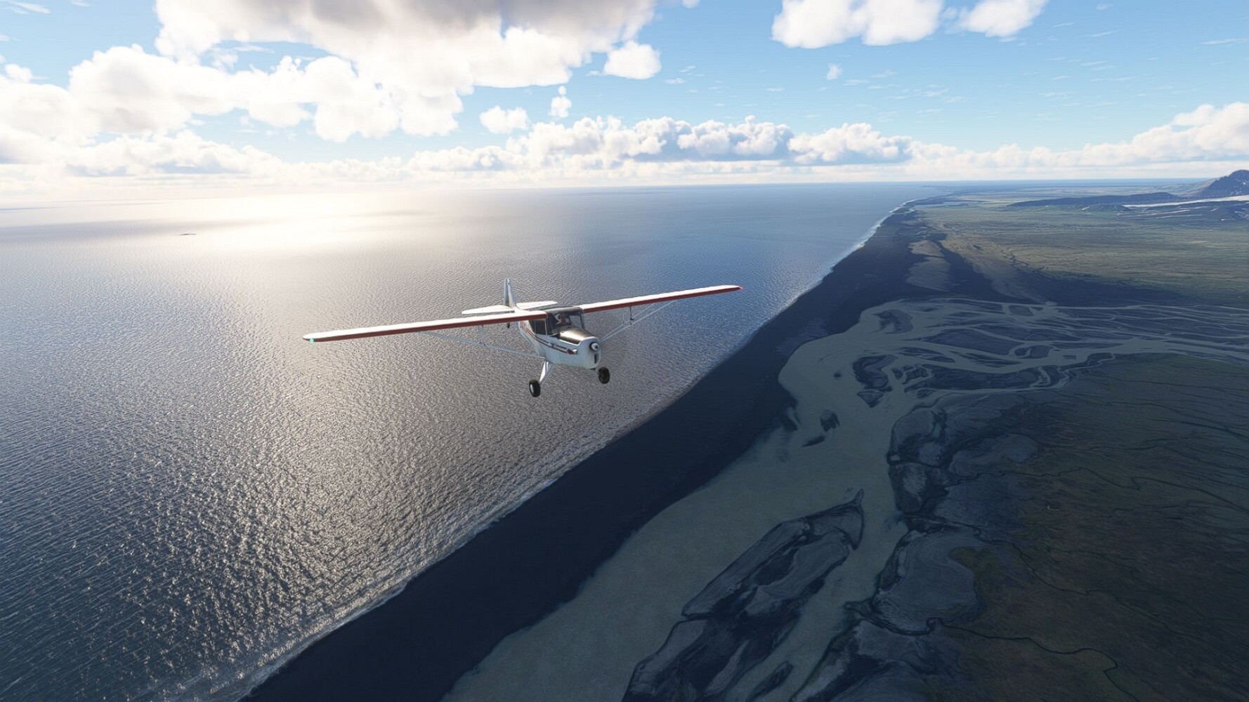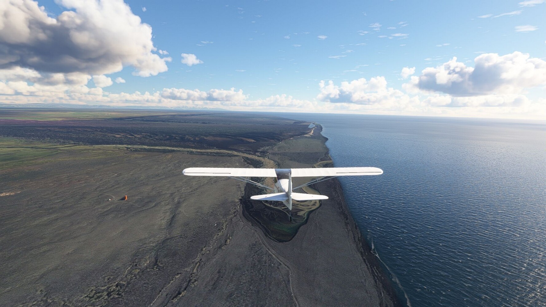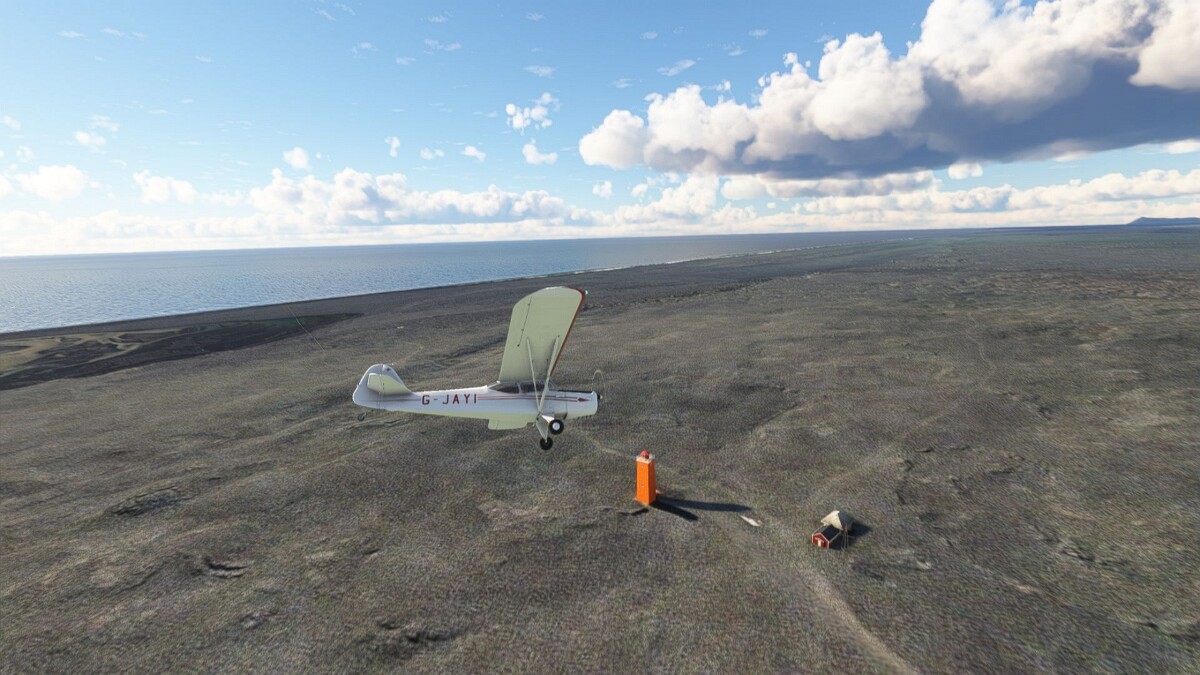 Am nächsten Morgen gings weiter von Vestmannaeyjabaer (BIVM) wieder zurück zur Südküste und weiter gen Osten. da muss irgendwo die DC3 liegen... An der Küste wurde im großen Stil aufgeforstet oder mit Büschen begrünt? Hier wirds was luftiger Und hier ist alles öde. Der übliche Bewuchs :-) Anflug auf die Klippe von Dyrhólaey... mit dem Leuchtturm Nummer 12, der wieder aus dem Haus Asobo stammt. Nett! Wirklich eine beeindruckende Lage. Hier endet nun die weiten Schwemmebenen und die Berge schieben sich an die Küste. Die Vulkanreste von Hálsanefshellir Sehr beeindruckend Erstmal kein Leuchtfeuer in Sicht. Aber neue Mündungen und neue Schwemm-Ebenen Gewaltig Und da habe ich wieder einen entdeckt. Die Nummer 13! Verloren in der Weite, der Alvidruhamrar Leuchtturm Liegt wirklich einsam. Es folgen die gewaltigen Ebenen die die Kettla hier hinterlassen hat. windgepeitscht Phantastische Muster von hier oben! Leider gibts hier manch unschöner AI-Flusslauf Aber es geht auch besser, allerdings sind die Muster nicht als Wasser markiert, schade... Grandios Wieder ein Fels im Nirgendwo: Ingólfshöfði Das Kap ist nur bei Ebbe zu erreichen, so sagt es zumindest die Wiki. Der Leuchtturm stammt aus dem Jahr 1916. Wieder ein eher klassisches Modell, dieses Mal von Garf. Sehr schön! Da passt auch die Nummer 14! Und weiter gehts Wir nähern uns Fjallsjökull Eisschollen... Auf dem Parkplatz ist es schon was eng... Wirklich tolle Bergformen Und grandiose Farben... Eine neue Schwemmebene Höfn ist erreicht, hier findet sich die Nummer 15. Ein kleiner Turm, der die Einfahrt in die flache Bucht markiert. Hier ist leider viel von dem was Wasser sein sollte im Flusi als Land dargestellt. Wieder sehr schade. Der kleine Flugplatz liegt hinter dem Städtchen. Der Tank war schon wieder leer, die Auster hat einen gewaltigen Durst nach Kerosin. Teil 02Teil 04