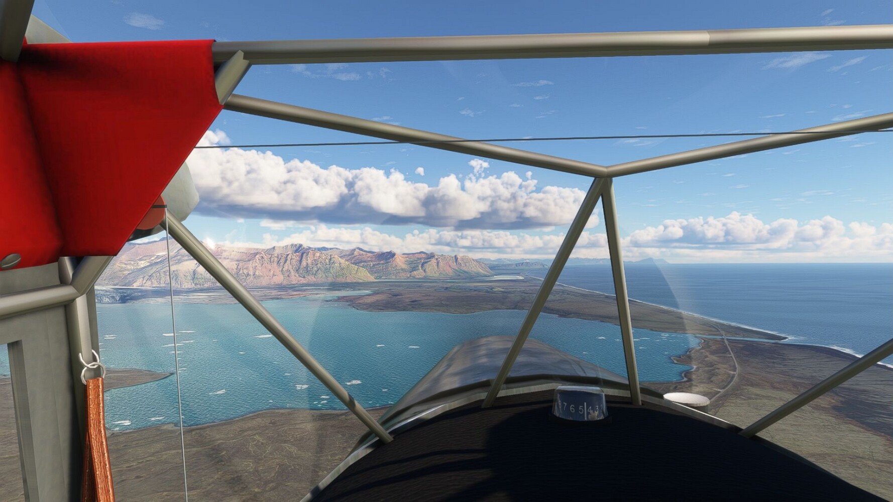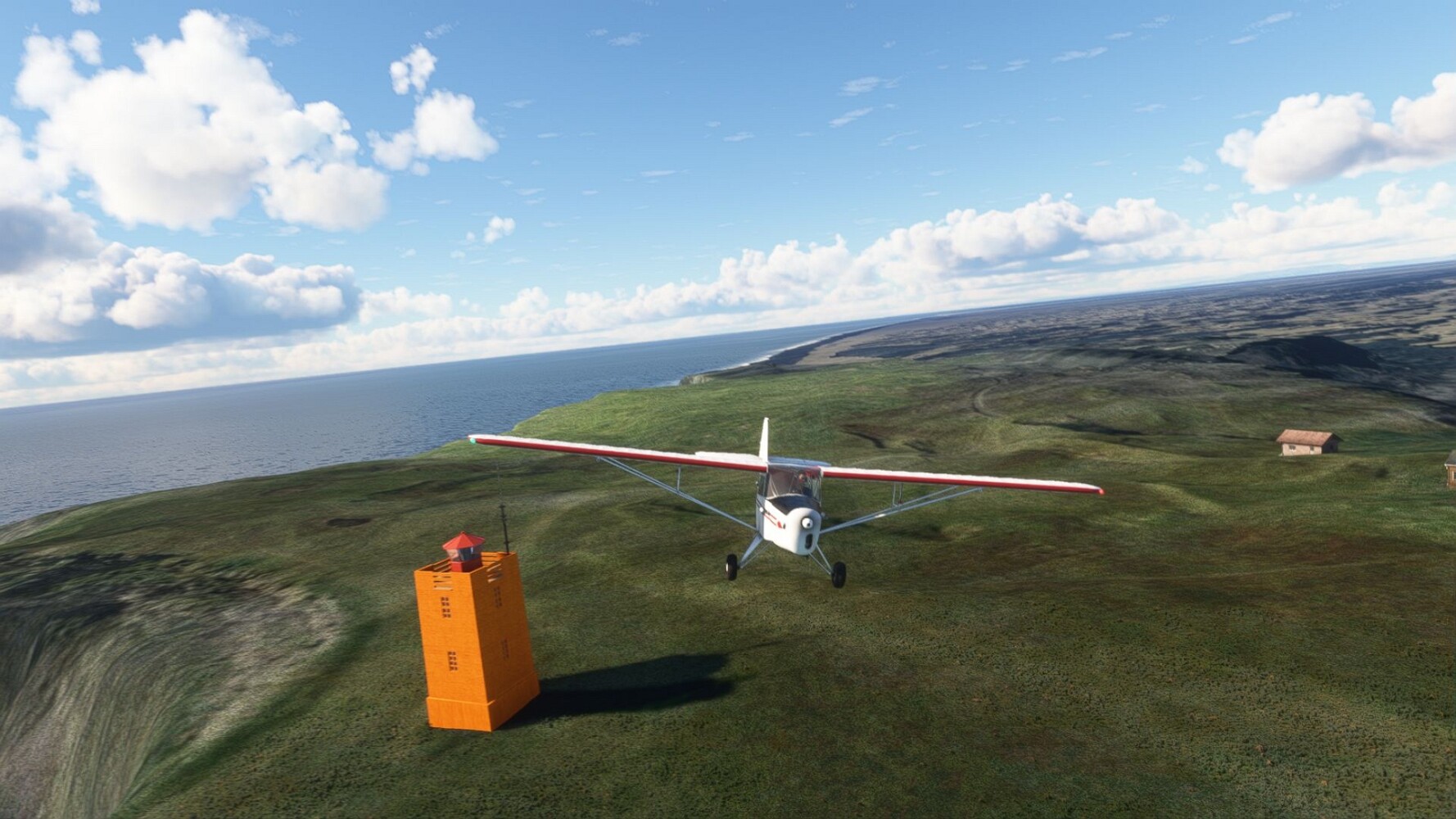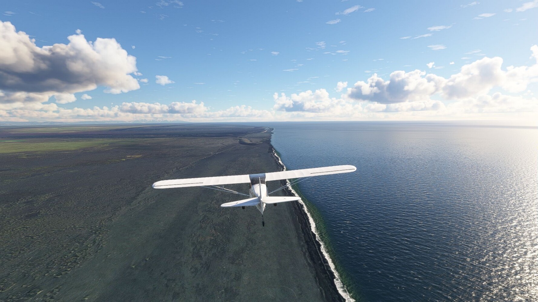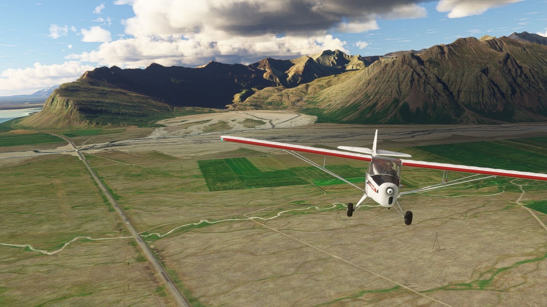 Am nächsten Morgen gings weiter von Vestmannaeyjabaer (BIVM) wieder zurück zur Südküste und weiter gen Osten. da muss irgendwo die DC3 liegen... An der Küste wurde im großen Stil aufgeforstet oder mit Büschen begrünt? Hier wirds was luftiger Und hier ist alles öde. Der übliche Bewuchs :-) Anflug auf die Klippe von Dyrhólaey... mit dem Leuchtturm Nummer 12, der wieder aus dem Haus Asobo stammt. Nett! Wirklich eine beeindruckende Lage. Hier endet nun die weiten Schwemmebenen und die Berge schieben sich an die Küste. Die Vulkanreste von Hálsanefshellir Sehr beeindruckend Erstmal kein Leuchtfeuer in Sicht. Aber neue Mündungen und neue Schwemm-Ebenen Gewaltig Und da habe ich wieder einen entdeckt. Die Nummer 13! Verloren in der Weite, der Alvidruhamrar Leuchtturm Liegt wirklich einsam. Es folgen die gewaltigen Ebenen die die Kettla hier hinterlassen hat. windgepeitscht Phantastische Muster von hier oben! Leider gibts hier manch unschöner AI-Flusslauf Aber es geht auch besser, allerdings sind die Muster nicht als Wasser markiert, schade... Grandios Wieder ein Fels im Nirgendwo: Ingólfshöfði Das Kap ist nur bei Ebbe zu erreichen, so sagt es zumindest die Wiki. Der Leuchtturm stammt aus dem Jahr 1916. Wieder ein eher klassisches Modell, dieses Mal von Garf. Sehr schön! Da passt auch die Nummer 14! Und weiter gehts Wir nähern uns Fjallsjökull Eisschollen... Auf dem Parkplatz ist es schon was eng... Wirklich tolle Bergformen Und grandiose Farben... Eine neue Schwemmebene Höfn ist erreicht, hier findet sich die Nummer 15. Ein kleiner Turm, der die Einfahrt in die flache Bucht markiert. Hier ist leider viel von dem was Wasser sein sollte im Flusi als Land dargestellt. Wieder sehr schade. Der kleine Flugplatz liegt hinter dem Städtchen. Der Tank war schon wieder leer, die Auster hat einen gewaltigen Durst nach Kerosin. Teil 02Teil 04