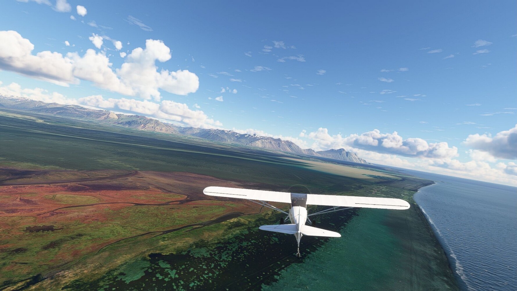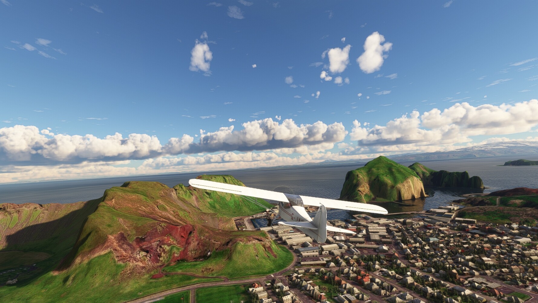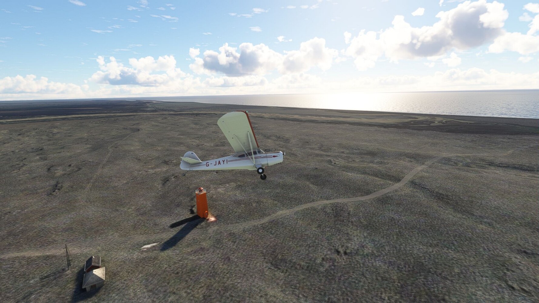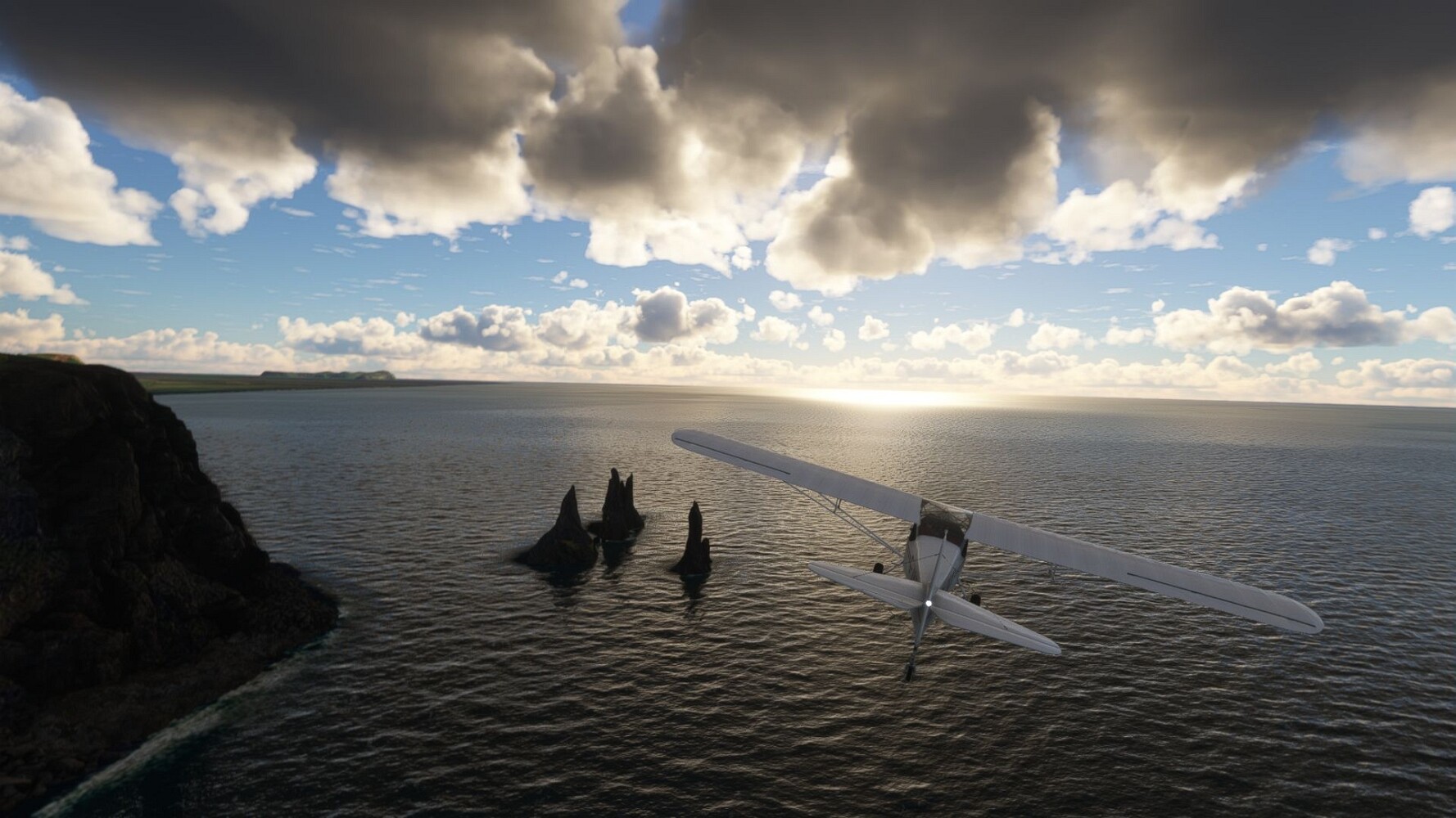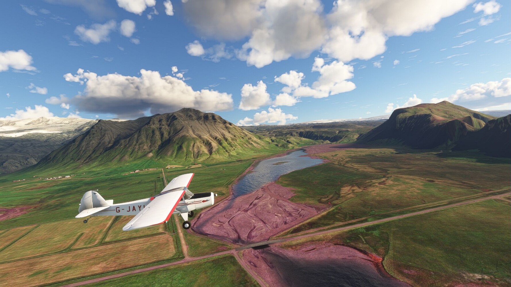 Am nächsten Morgen gings weiter von Vestmannaeyjabaer (BIVM) wieder zurück zur Südküste und weiter gen Osten. da muss irgendwo die DC3 liegen... An der Küste wurde im großen Stil aufgeforstet oder mit Büschen begrünt? Hier wirds was luftiger Und hier ist alles öde. Der übliche Bewuchs :-) Anflug auf die Klippe von Dyrhólaey... mit dem Leuchtturm Nummer 12, der wieder aus dem Haus Asobo stammt. Nett! Wirklich eine beeindruckende Lage. Hier endet nun die weiten Schwemmebenen und die Berge schieben sich an die Küste. Die Vulkanreste von Hálsanefshellir Sehr beeindruckend Erstmal kein Leuchtfeuer in Sicht. Aber neue Mündungen und neue Schwemm-Ebenen Gewaltig Und da habe ich wieder einen entdeckt. Die Nummer 13! Verloren in der Weite, der Alvidruhamrar Leuchtturm Liegt wirklich einsam. Es folgen die gewaltigen Ebenen die die Kettla hier hinterlassen hat. windgepeitscht Phantastische Muster von hier oben! Leider gibts hier manch unschöner AI-Flusslauf Aber es geht auch besser, allerdings sind die Muster nicht als Wasser markiert, schade... Grandios Wieder ein Fels im Nirgendwo: Ingólfshöfði Das Kap ist nur bei Ebbe zu erreichen, so sagt es zumindest die Wiki. Der Leuchtturm stammt aus dem Jahr 1916. Wieder ein eher klassisches Modell, dieses Mal von Garf. Sehr schön! Da passt auch die Nummer 14! Und weiter gehts Wir nähern uns Fjallsjökull Eisschollen... Auf dem Parkplatz ist es schon was eng... Wirklich tolle Bergformen Und grandiose Farben... Eine neue Schwemmebene Höfn ist erreicht, hier findet sich die Nummer 15. Ein kleiner Turm, der die Einfahrt in die flache Bucht markiert. Hier ist leider viel von dem was Wasser sein sollte im Flusi als Land dargestellt. Wieder sehr schade. Der kleine Flugplatz liegt hinter dem Städtchen. Der Tank war schon wieder leer, die Auster hat einen gewaltigen Durst nach Kerosin. Teil 02Teil 04