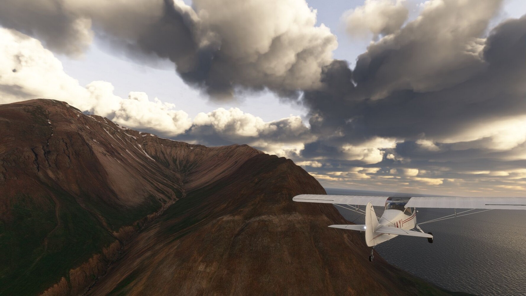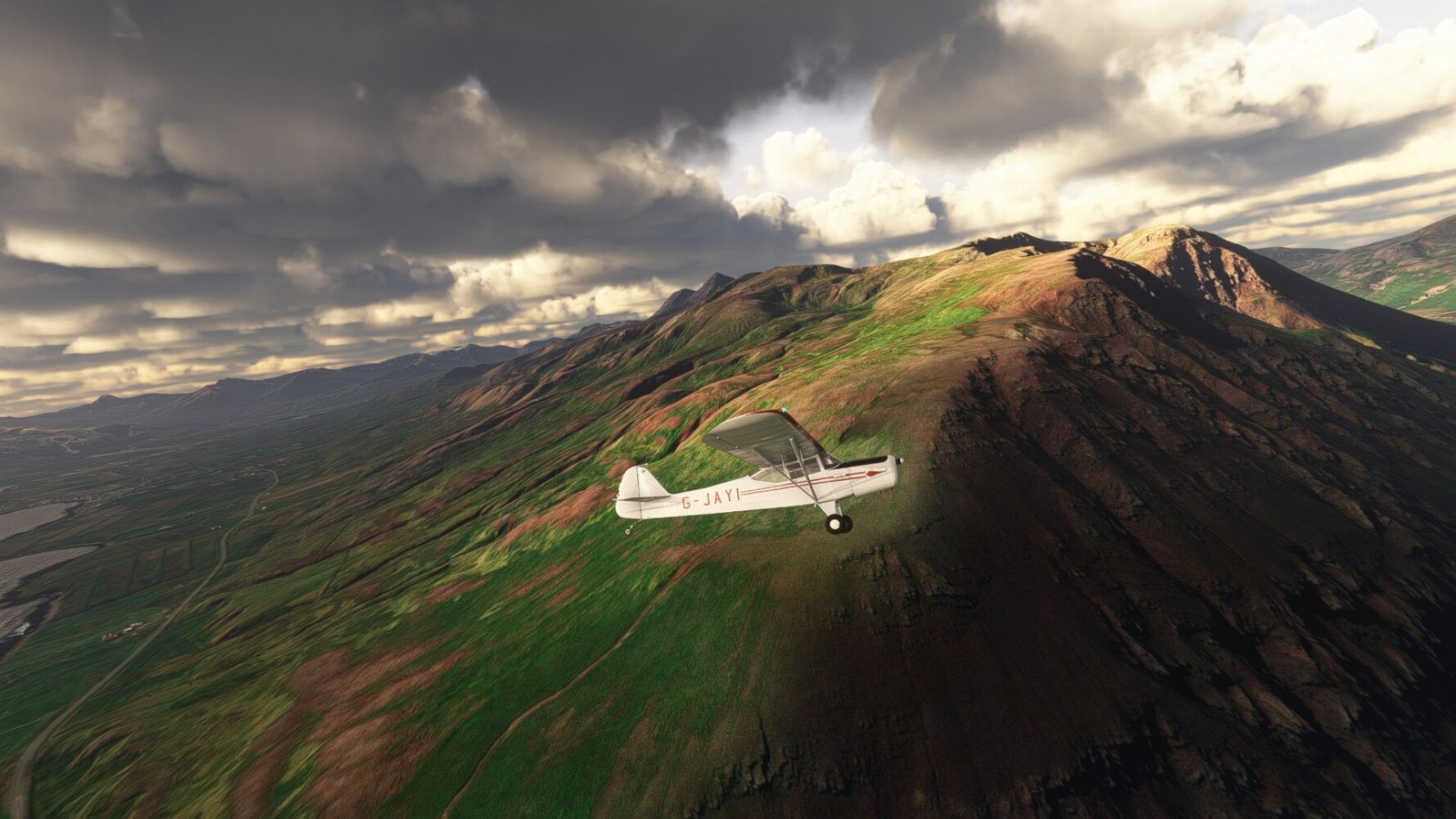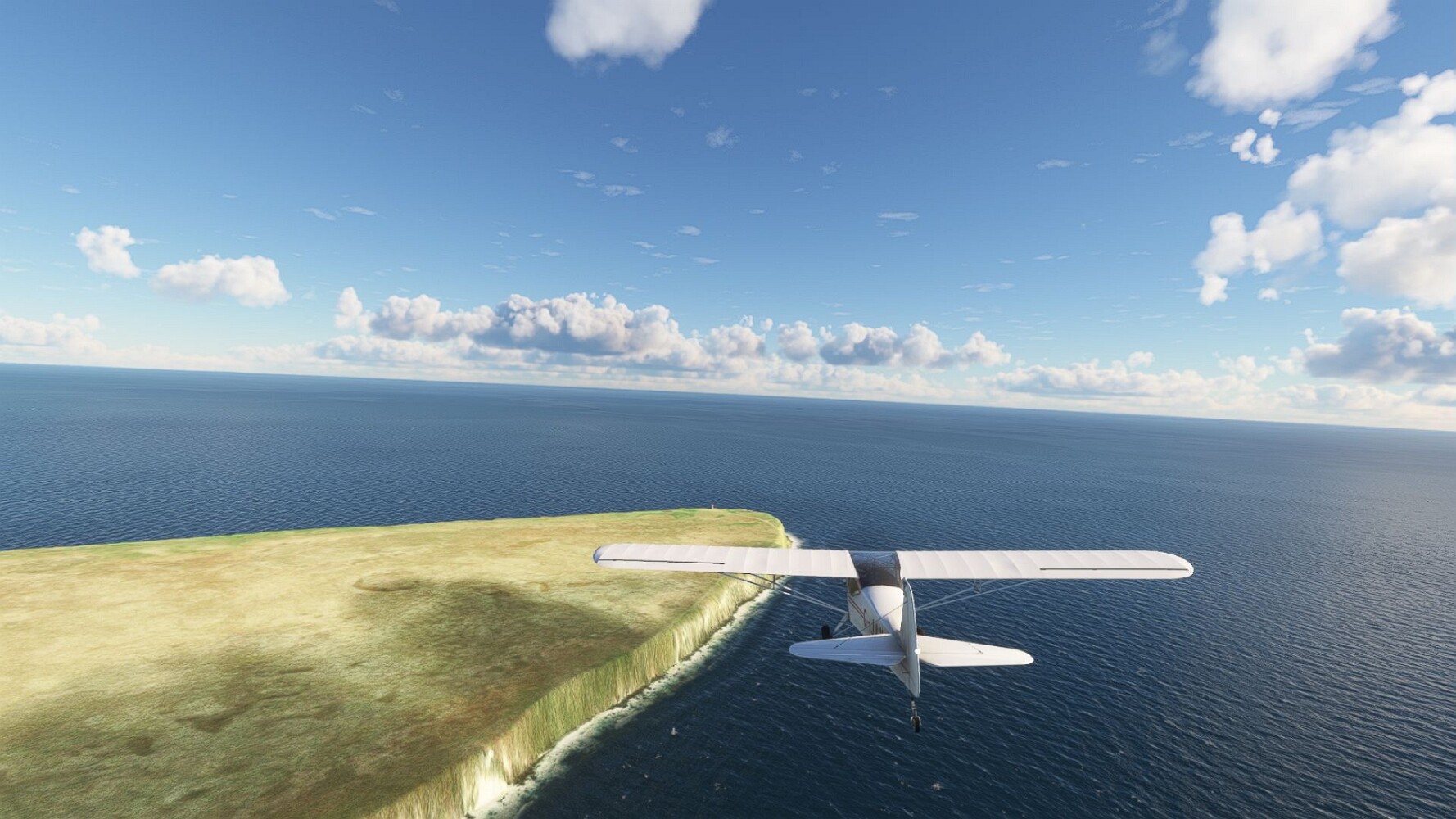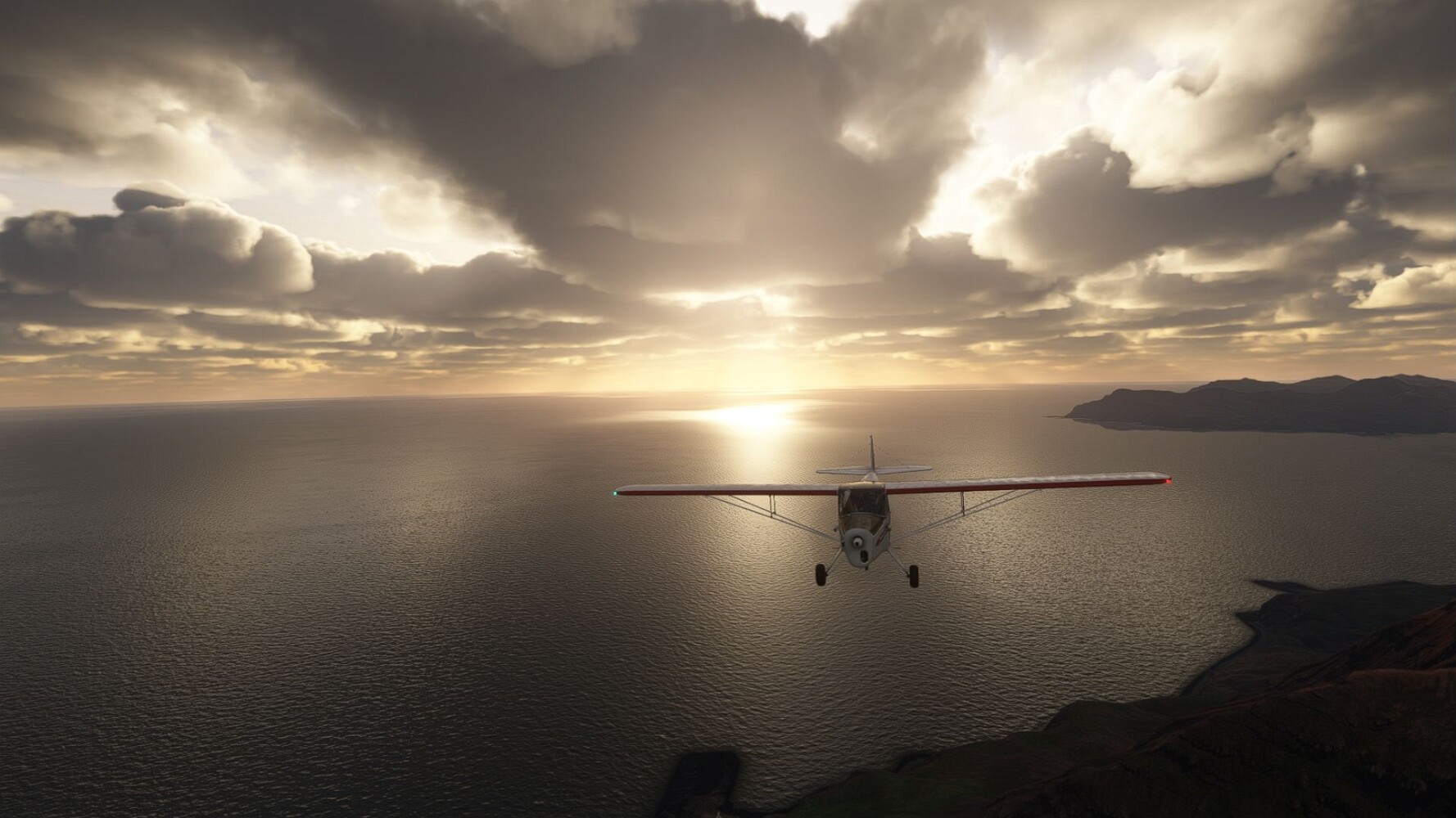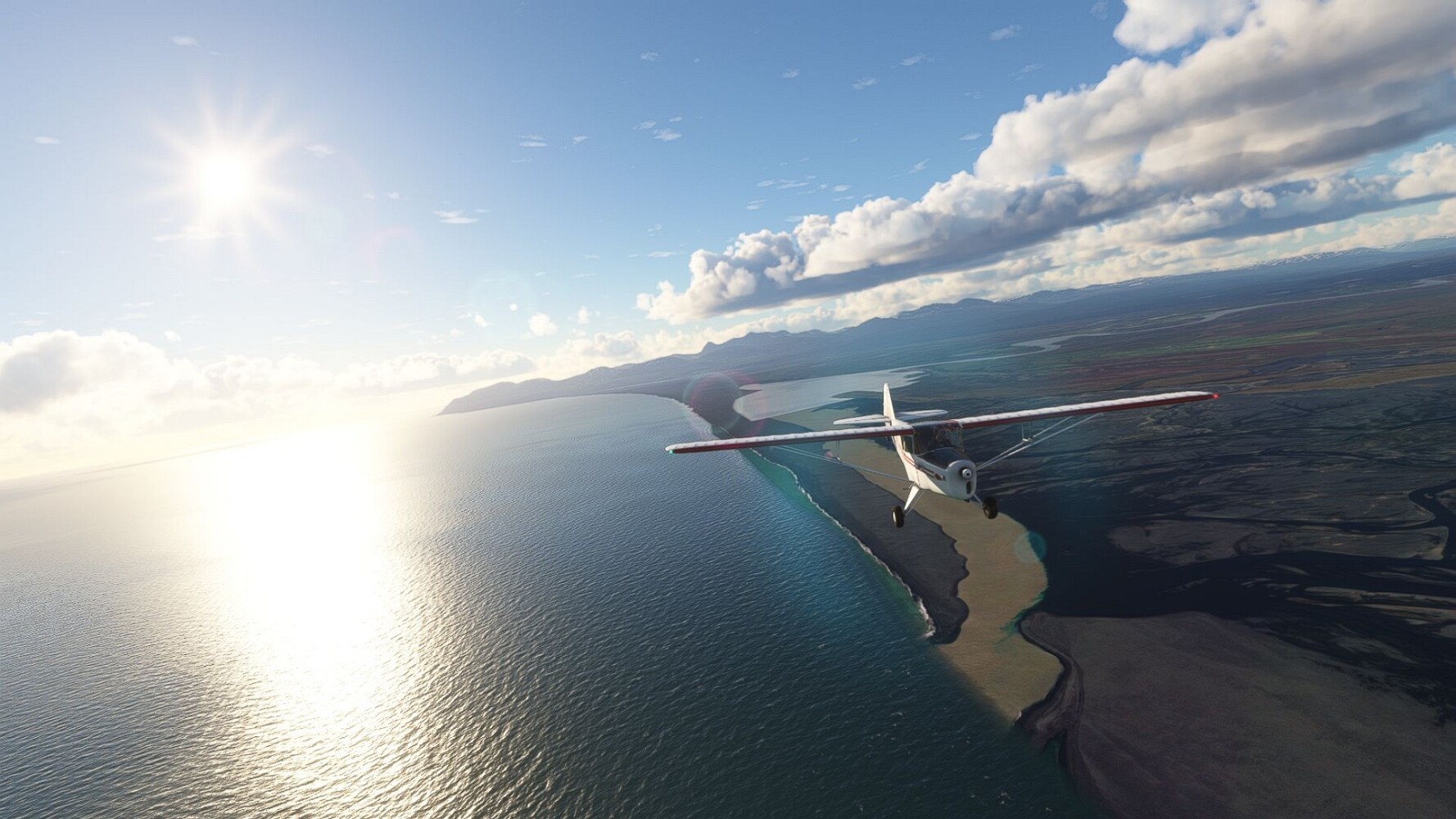 Start war in Borgarfjödur Eystri, BIBF Gleich gehts wieder an Steilhängen entlang. Kleine Buchten öffnen sich hier. Die Landschaft bleibt aber wild und die Berge steil. Der erste Leuchtturm dieser Etappe voraus, 32. der Umrundung. Es ist der von Kögur. Mit Schutzmauer und ohne leuchtenden Anstrich. Und sehr abgelegen. Dann kommt die weite Bucht von Heradsfloi. Mal wieder ein weiter, schwarzer Strand. Mal im Sommerlicht, ein anderes Wettertheam, passt nicht finde ich... so ist es besser. Die Nummer 33 findet sich auf einer kleinen Insel, die dem Kap vorgelagert ist. Es ist der Leuchtturm Bjarnarey. Eine kleine Festung, die Laterne eingekeilt zwischen den starken Eckpfeilern. Langsam werden die Berge flacher... und das Land weiter. Der kleine Flugplatz von Vöpnafjördur (BIVO) Der zugehörige Ort liegt auf der Halbinsel. Nördlich außerhalb des Ortes liegt der nächste Leuchtturm, die 34 in der bisherigen Zählung. Er nennt sich Kolbeinstangi Mal wieder ein klassisches isländisches Modell. Blick auf Vopnafjördur. Und weiter gehts Merkwürdige Begegnung, AI-Traffic auf Meereshöhe... Hier wirds nun ganz flach, mit einer Steilküste. Die steigt langsam an... Die Nummer 35 kommt in Sichtweite. Das Leuchtfeuer Digranes. Wieder ein klassisches Islandmodell. Die Küste steigt weiter an. Trogtäler zeugen von der vergangenen Vergletscherung. Hier ragt eine flache Halbinsel weit ins Meer. Und an ihrer Spitze einsam ein Leuchtfeuer. Sein Name ist Langanessviti, die Nummer 36. Drei Dutzend sind schon voll. Eine ganz andere Landschaft hier. Schneereste. Die 37 markierte die Bucht von Lonafjördur Auf meiner Karte ist er namenlos... Google sagt es ist der Turm von Grenjanes Es handelt sich wieder um ein Standardmodell Schon ist der nächste Landplatz in Sicht... Thorshofn BITN Teil 07Teil 09