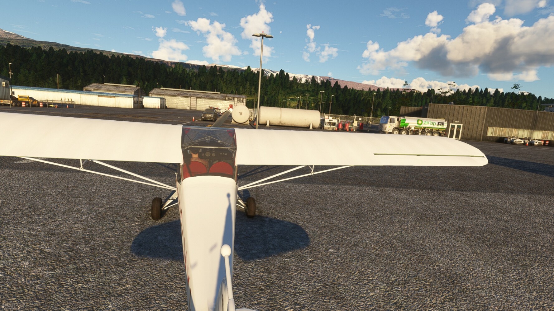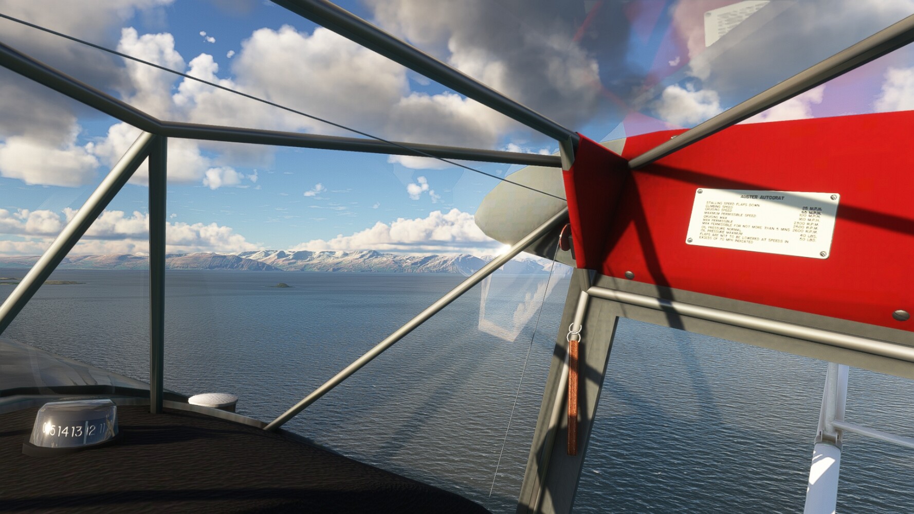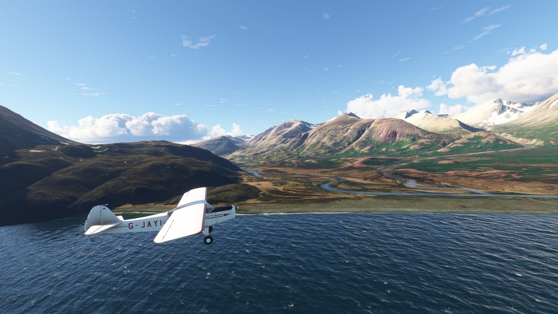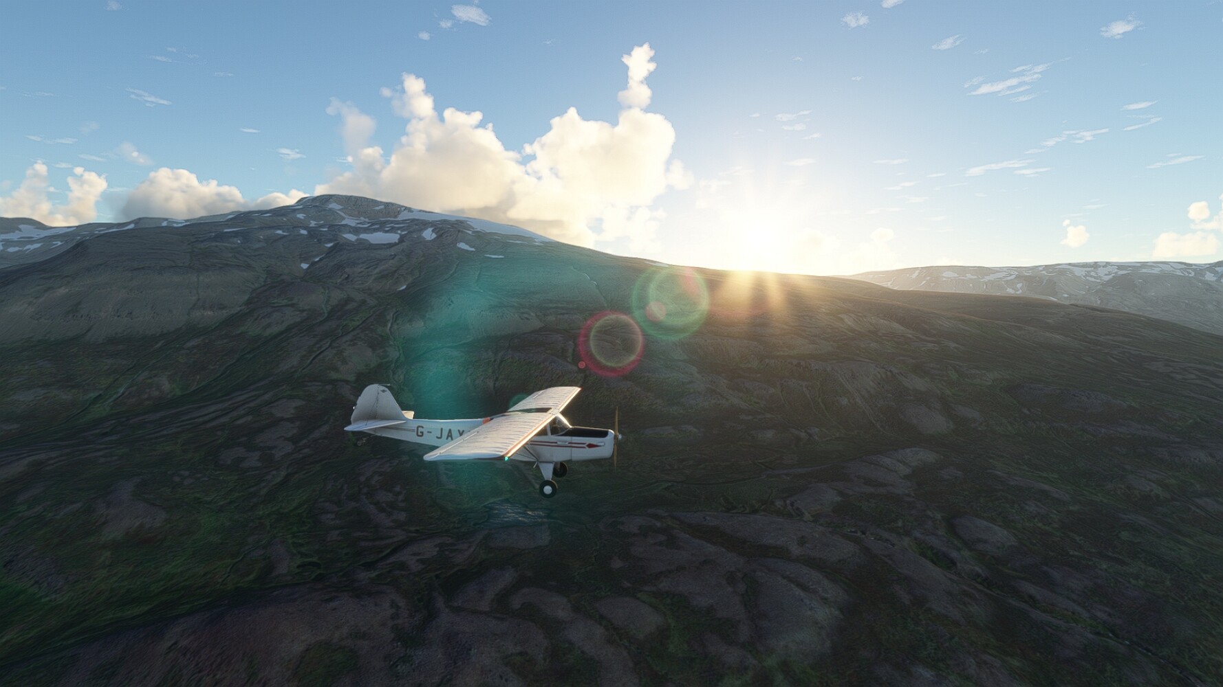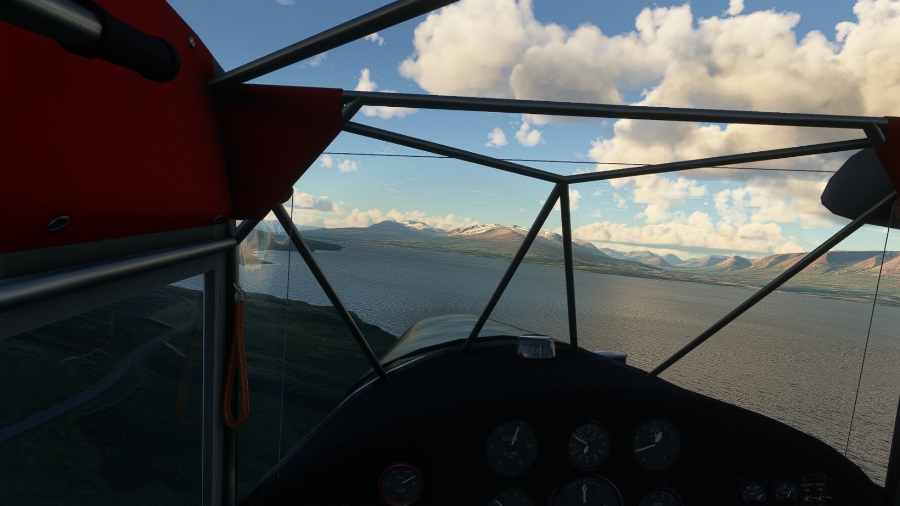 Noch ein Schlenker über den Flugplatzleuchtturm und weiter gings gen Westen. Hier wird wieder frisches Grün gepflanzt Sandformationen Es ist die Bucht Öxarfjördur. Es folgt ein längeres Stück flacher Steilküste. Und da findet sich schon das nächste Leuchtfeuer. Tjörnes, die Nummer 44. Wir erkennen es nun schon sofort: ein Standardmodell mittlerer Höhe. Aber es gibt eine herrliche Aussicht von hier oben. Die Insel Lundey ist auch leuchtbefeuert. Kaum zu erkennen. Putzig, die fünfunfvierzig... Und am nördlichen Ortsbeginn von Husavik steht der nächste, der ist aber nun wirklich ein besonderes Stück. Zitronengelb, halbrund und... schick gestaltet: Húsavikurviti Hätte ihn in die 1930er Jahre datiert... Nummer 46! Er thront in der Tat über dem Hafen des Ortes. Nun kommen deutlich höhere Berge in Sicht. Da rauscht ein Wasserfall ins Meer. Hier gibt nun wirklich einsame Buchten. Und vor der Küste Flatey, das auch von einem Leuchtfeuer gekennzeichnet ist. Und es gibt eine Kirche, die sieht aber nicht so aus wie in der virtuellen Welt, das scheint ein Stellvertretermodell aus einem Addon zu sein. Aber nett anzusehen ist sie trotzdem. Der Turm ist allerdings natürlich naturgetreu umgesetzt, die 47. Solartechnik ist auch zu finden. Und hier der Beweis: er erfüllt seine Funktion! Am Morgen nach dieser ungeplanen Unterbrechung gings weiter gen Westen. Hier liegt überall noch Schnee. In dieser Einsamkeit findet sich aber dann doch noch ein Leuchtturm. Fast nicht zu erkennen: die 48. Das Leuchtfeuer von Gjörgurtá Wie die Region sehr abgelegen. Hier geht es jetzt in den Eyjafjö... Überall stürzen Bäche dem Meer entgegen. Die Insel Hrisey Dalvík Am Ostufer der Bucht liegt der Ort Svalbardseyri, Dessen Landzunge wird von einem kleinen Standardmodell gekennzeichnet. Die Nummer 49. Das Ziel der Etappe kommt in Sicht, Akureyri, die größte Siedlung der Region mit dem größten Flugplatz. Der macht schon was her. Die Umsetzung stammt von Asobo und war Teil des World Updates XV. Teil 09Teil 11