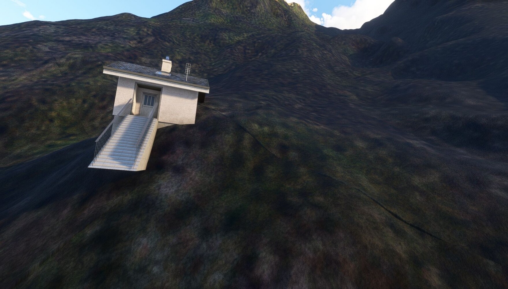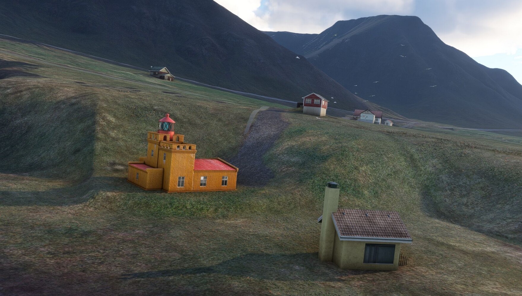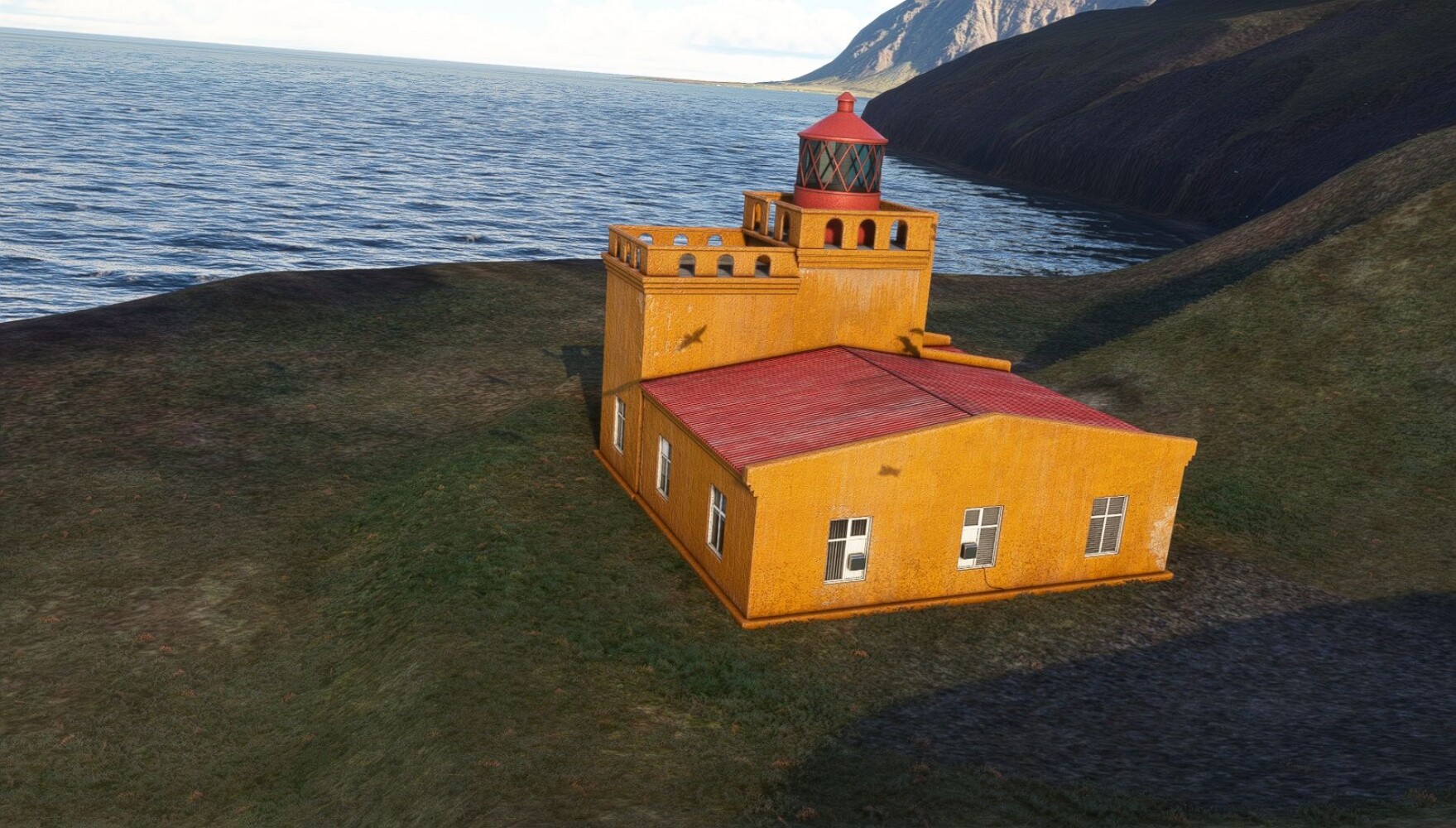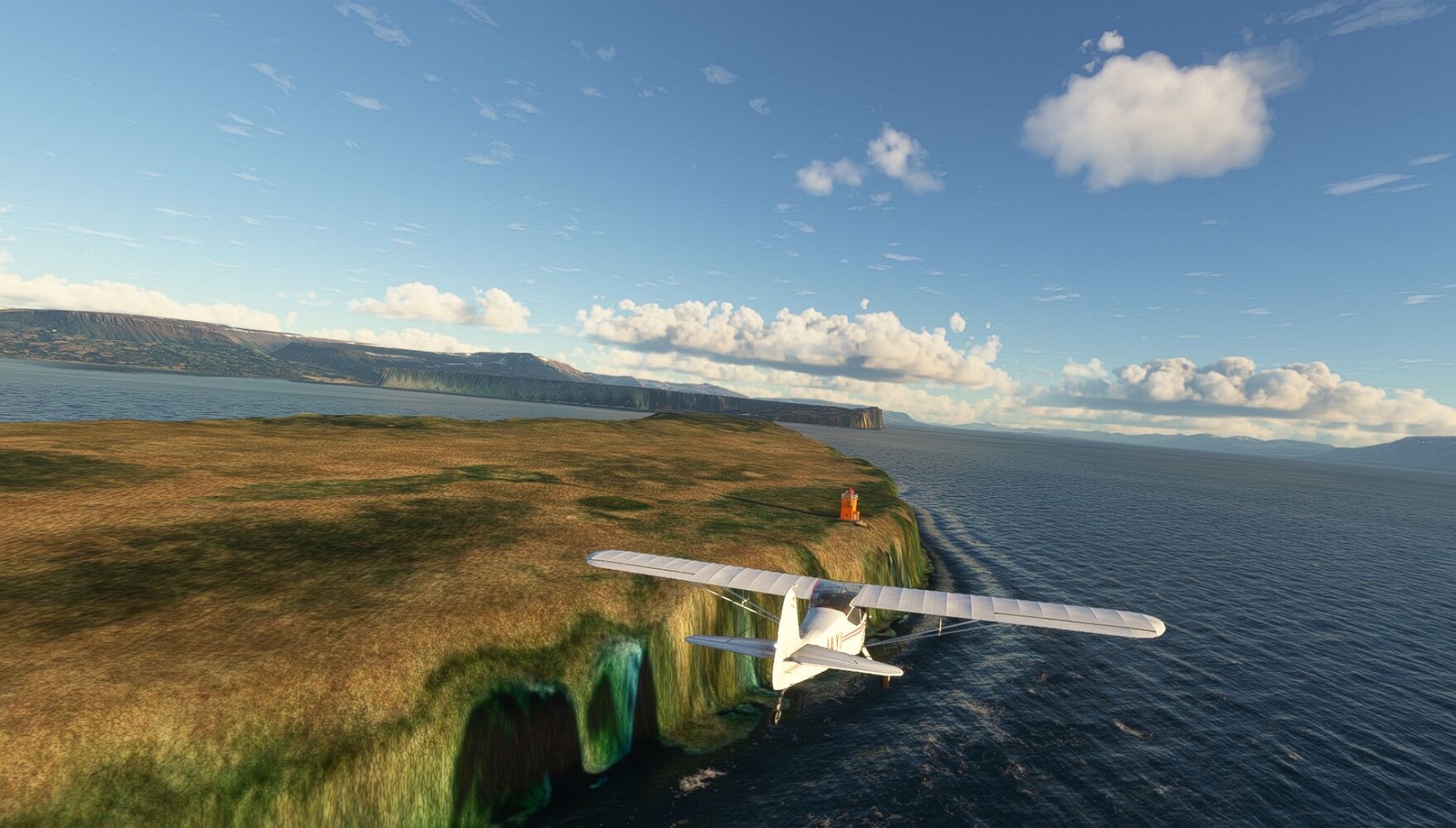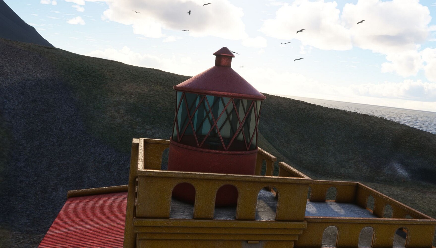 Schon geht wieder in die Lüfte! Siglufjordur Hier fehlen mal wieder die Luftbilder, die KI hat ein Pflaster drauf geklebt. Noch ein Turm? Ne wieder eine KI-Bau am Hang :-) Aber hier: die 54. Das ist der Saudanes Leuchtturm, das Modell stammt mal wieder nicht von Garf, sondern von Asobo. Auch sehr detailreich. Hier gibts mehr Infos: Link Hier gibts Wolkenbilder am Boden, lässt sich wohl nicht verhindern. Die Bucht von Miklavatn Die vorgelagerten Dünen sperren die Bucht zum Meer. Hier gibt ein bisschen Landwirtschaft. Gewaltige Tafelberge Da scheint die 55 zu kommen! Der Leuchtturm Straumnesviti. Ein ungewöhnliches Leuchtfeuer. Windumtoste Landzunge Weiter gings zur vorgelagerten Insel Málmey, da soll es auch ein Leuchtfeuer geben. Da ist es, die 56. Die Insel ist unbewohnt. Wieder ein altbekanntes Modell, Eingang zur Seeseite. Wenig Infos zu finden. Hier gibts was: Link Eine letzte Schleife Links eine beeindruckendes Steinmeer, rechts ein Meshfehler. Eieieiei, unschön! Heukugeln wie überall Die Piste ist schwer zu finden, bin im Anflug auf Stóragerdi (BI51). Wohl eine Schafzähl- und sortieranlage. GEschafft, das Wetter wurde wüster. So viel für heute. Teil 11Teil 13