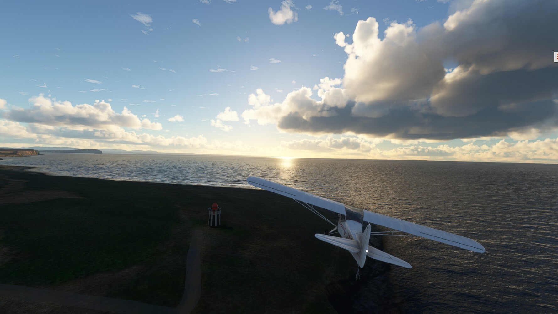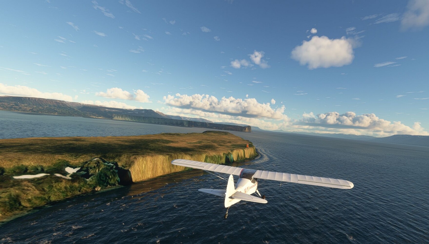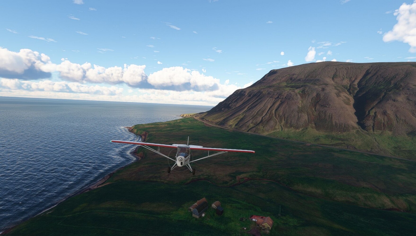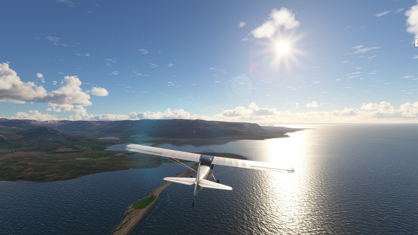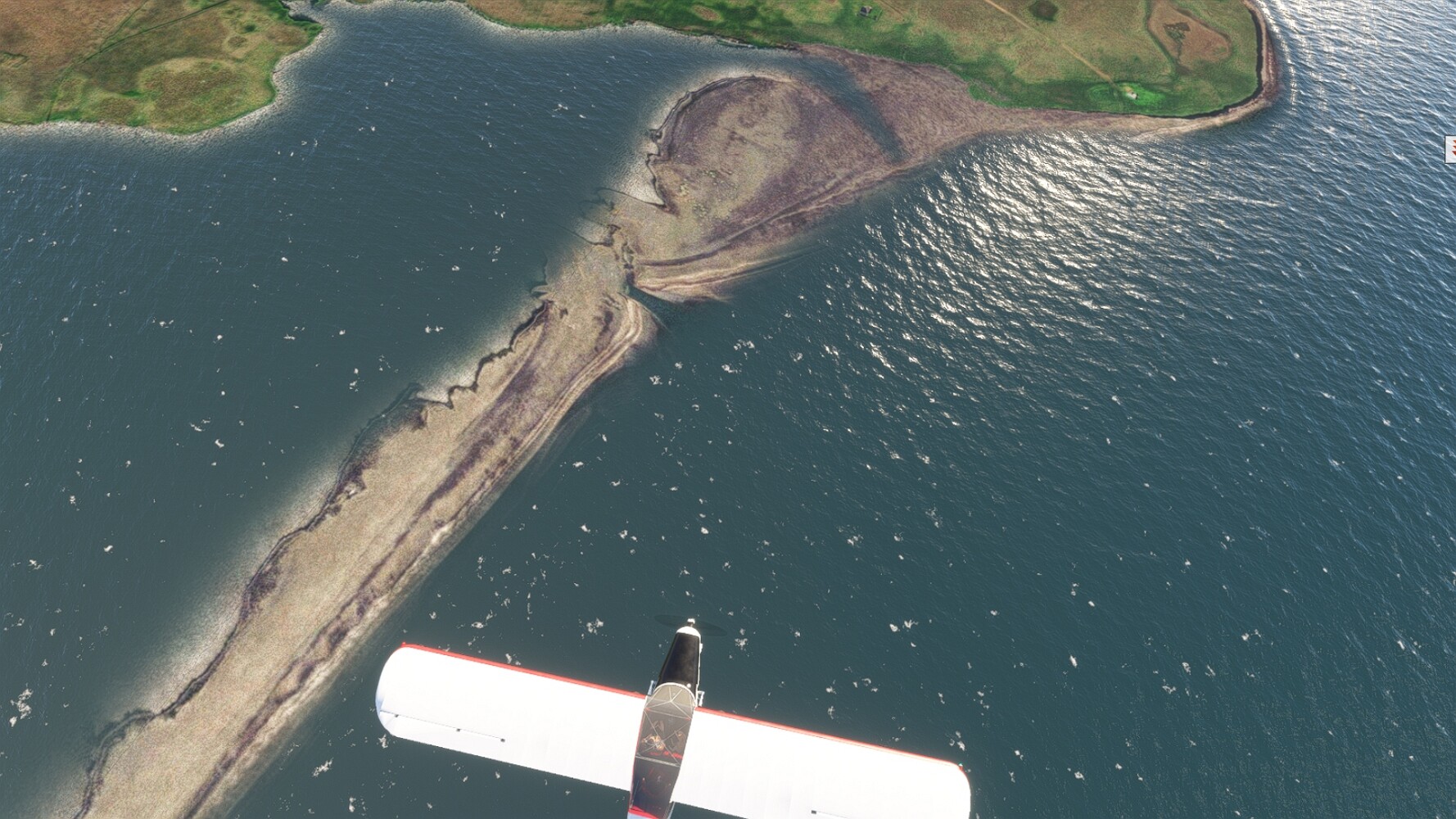 Schon geht wieder in die Lüfte! Siglufjordur Hier fehlen mal wieder die Luftbilder, die KI hat ein Pflaster drauf geklebt. Noch ein Turm? Ne wieder eine KI-Bau am Hang :-) Aber hier: die 54. Das ist der Saudanes Leuchtturm, das Modell stammt mal wieder nicht von Garf, sondern von Asobo. Auch sehr detailreich. Hier gibts mehr Infos: Link Hier gibts Wolkenbilder am Boden, lässt sich wohl nicht verhindern. Die Bucht von Miklavatn Die vorgelagerten Dünen sperren die Bucht zum Meer. Hier gibt ein bisschen Landwirtschaft. Gewaltige Tafelberge Da scheint die 55 zu kommen! Der Leuchtturm Straumnesviti. Ein ungewöhnliches Leuchtfeuer. Windumtoste Landzunge Weiter gings zur vorgelagerten Insel Málmey, da soll es auch ein Leuchtfeuer geben. Da ist es, die 56. Die Insel ist unbewohnt. Wieder ein altbekanntes Modell, Eingang zur Seeseite. Wenig Infos zu finden. Hier gibts was: Link Eine letzte Schleife Links eine beeindruckendes Steinmeer, rechts ein Meshfehler. Eieieiei, unschön! Heukugeln wie überall Die Piste ist schwer zu finden, bin im Anflug auf Stóragerdi (BI51). Wohl eine Schafzähl- und sortieranlage. GEschafft, das Wetter wurde wüster. So viel für heute. Teil 11Teil 13