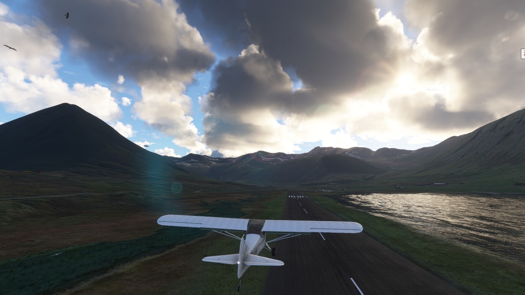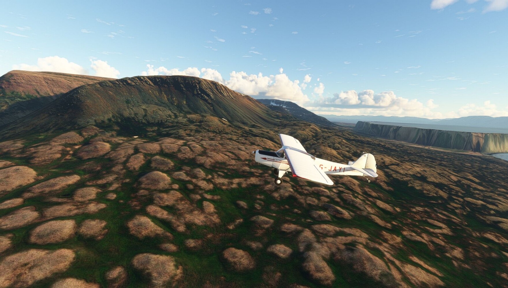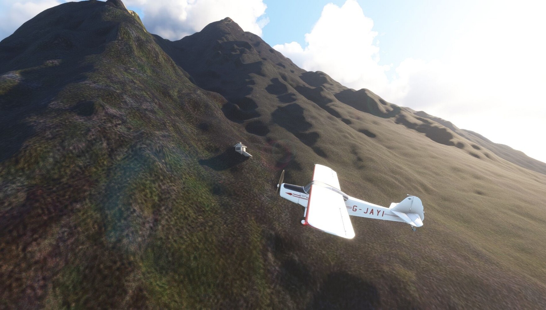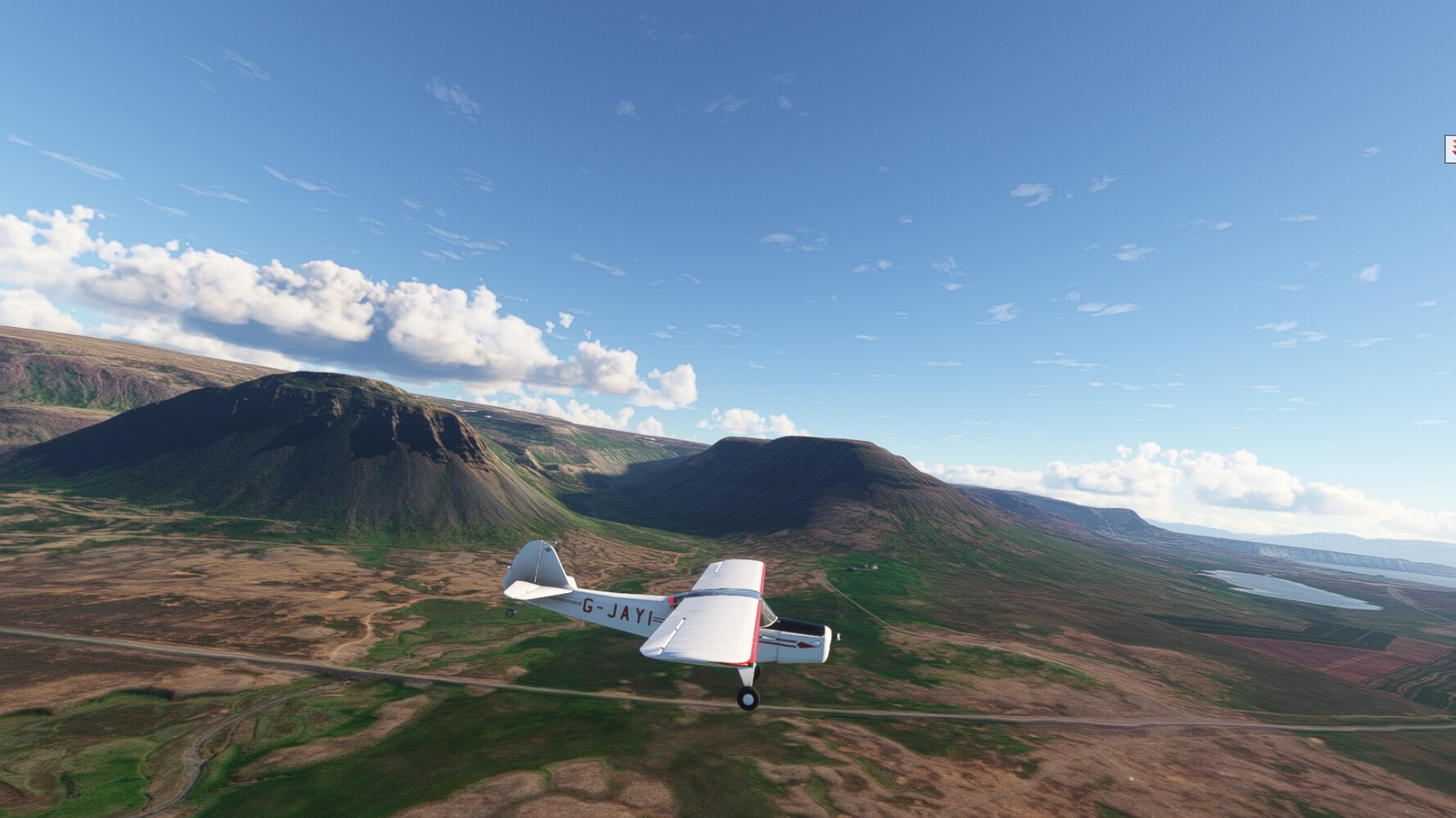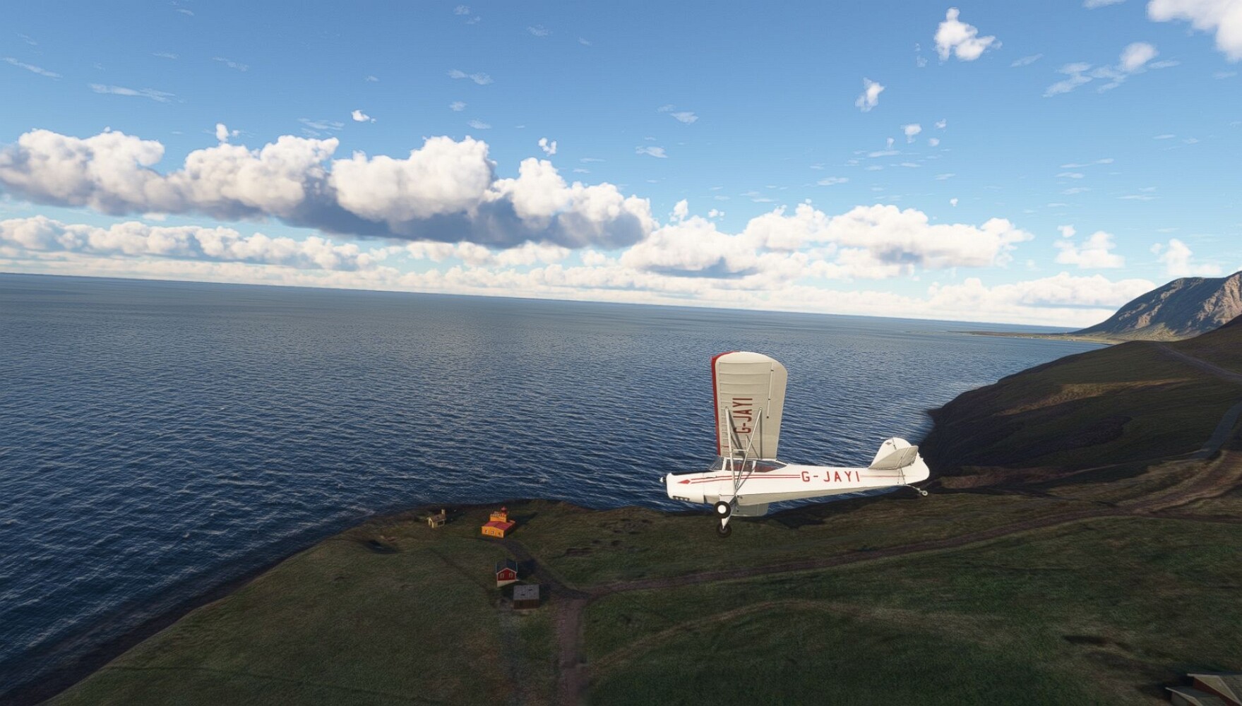 Schon geht wieder in die Lüfte! Siglufjordur Hier fehlen mal wieder die Luftbilder, die KI hat ein Pflaster drauf geklebt. Noch ein Turm? Ne wieder eine KI-Bau am Hang :-) Aber hier: die 54. Das ist der Saudanes Leuchtturm, das Modell stammt mal wieder nicht von Garf, sondern von Asobo. Auch sehr detailreich. Hier gibts mehr Infos: Link Hier gibts Wolkenbilder am Boden, lässt sich wohl nicht verhindern. Die Bucht von Miklavatn Die vorgelagerten Dünen sperren die Bucht zum Meer. Hier gibt ein bisschen Landwirtschaft. Gewaltige Tafelberge Da scheint die 55 zu kommen! Der Leuchtturm Straumnesviti. Ein ungewöhnliches Leuchtfeuer. Windumtoste Landzunge Weiter gings zur vorgelagerten Insel Málmey, da soll es auch ein Leuchtfeuer geben. Da ist es, die 56. Die Insel ist unbewohnt. Wieder ein altbekanntes Modell, Eingang zur Seeseite. Wenig Infos zu finden. Hier gibts was: Link Eine letzte Schleife Links eine beeindruckendes Steinmeer, rechts ein Meshfehler. Eieieiei, unschön! Heukugeln wie überall Die Piste ist schwer zu finden, bin im Anflug auf Stóragerdi (BI51). Wohl eine Schafzähl- und sortieranlage. GEschafft, das Wetter wurde wüster. So viel für heute. Teil 11Teil 13