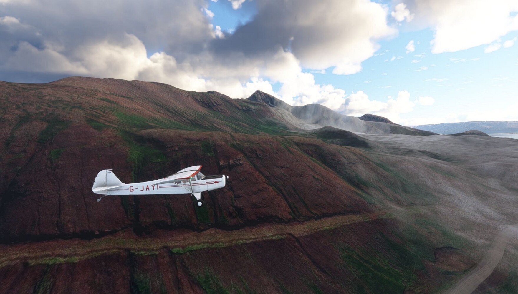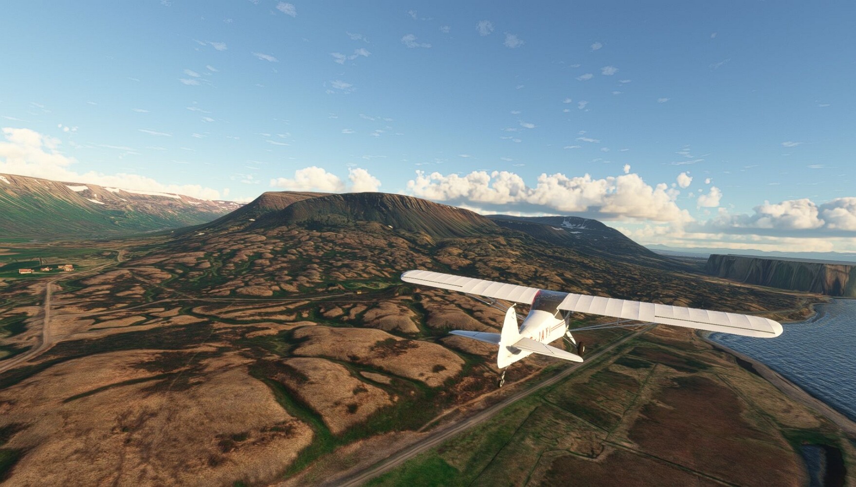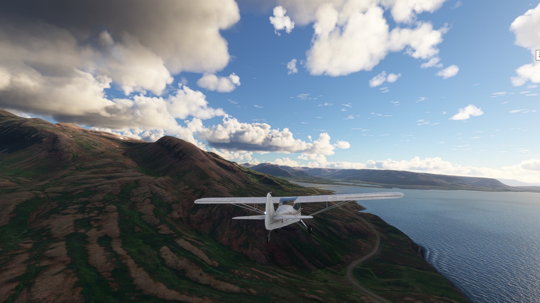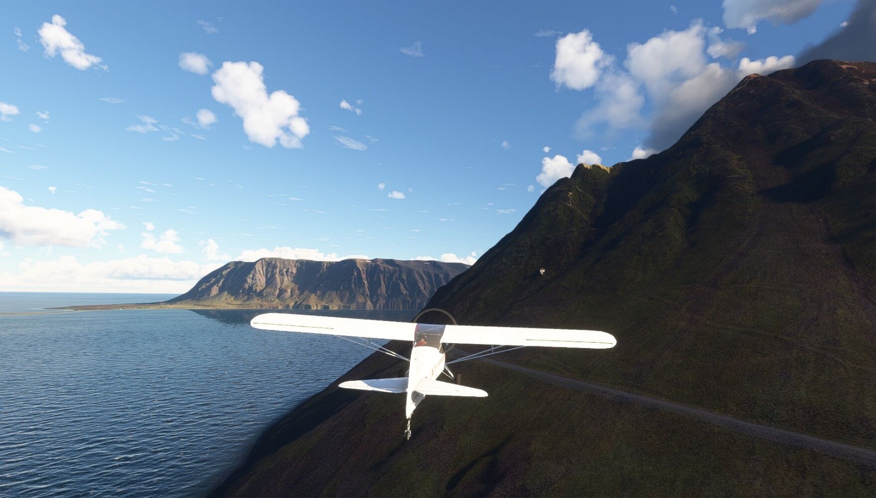 Schon geht wieder in die Lüfte! Siglufjordur Hier fehlen mal wieder die Luftbilder, die KI hat ein Pflaster drauf geklebt. Noch ein Turm? Ne wieder eine KI-Bau am Hang :-) Aber hier: die 54. Das ist der Saudanes Leuchtturm, das Modell stammt mal wieder nicht von Garf, sondern von Asobo. Auch sehr detailreich. Hier gibts mehr Infos: Link Hier gibts Wolkenbilder am Boden, lässt sich wohl nicht verhindern. Die Bucht von Miklavatn Die vorgelagerten Dünen sperren die Bucht zum Meer. Hier gibt ein bisschen Landwirtschaft. Gewaltige Tafelberge Da scheint die 55 zu kommen! Der Leuchtturm Straumnesviti. Ein ungewöhnliches Leuchtfeuer. Windumtoste Landzunge Weiter gings zur vorgelagerten Insel Málmey, da soll es auch ein Leuchtfeuer geben. Da ist es, die 56. Die Insel ist unbewohnt. Wieder ein altbekanntes Modell, Eingang zur Seeseite. Wenig Infos zu finden. Hier gibts was: Link Eine letzte Schleife Links eine beeindruckendes Steinmeer, rechts ein Meshfehler. Eieieiei, unschön! Heukugeln wie überall Die Piste ist schwer zu finden, bin im Anflug auf Stóragerdi (BI51). Wohl eine Schafzähl- und sortieranlage. GEschafft, das Wetter wurde wüster. So viel für heute. Teil 11Teil 13