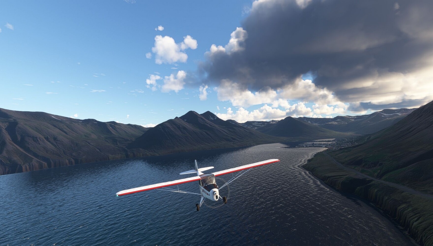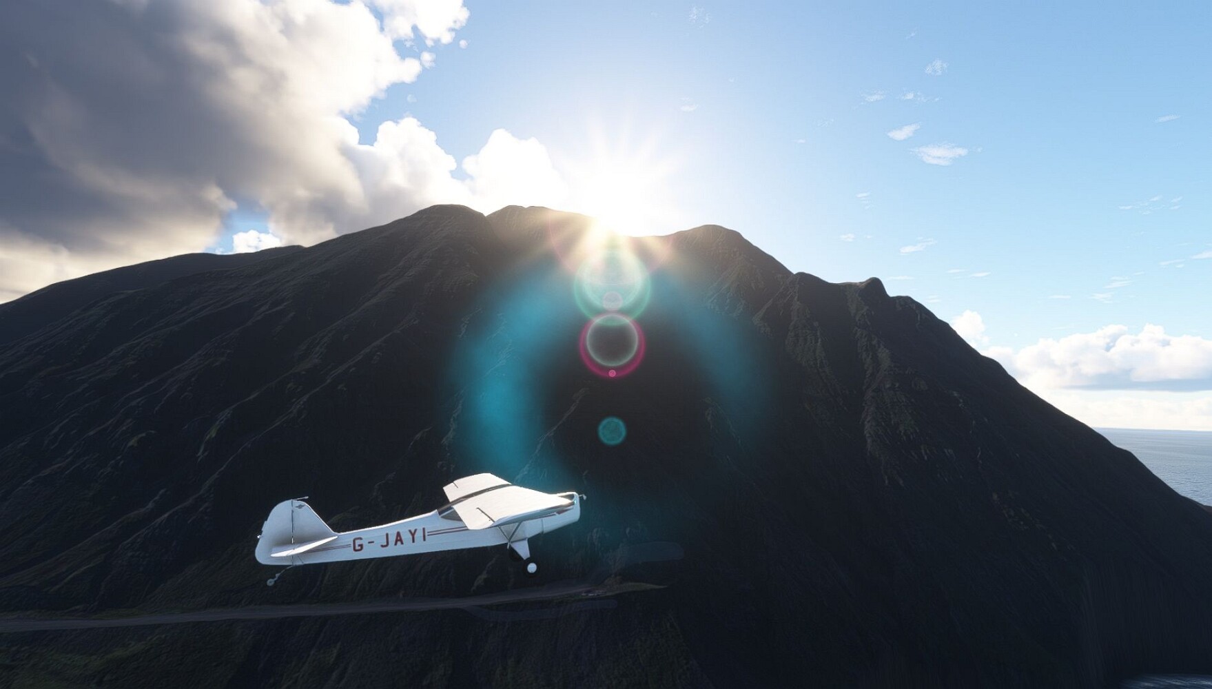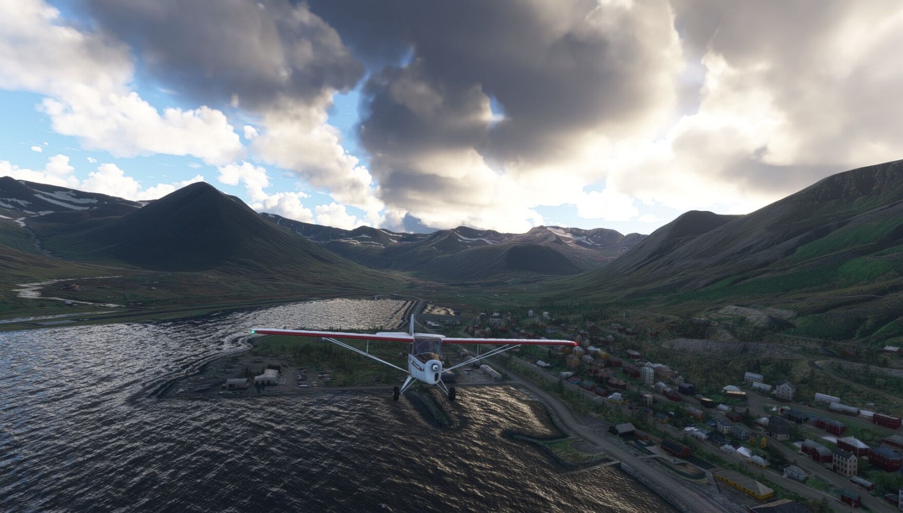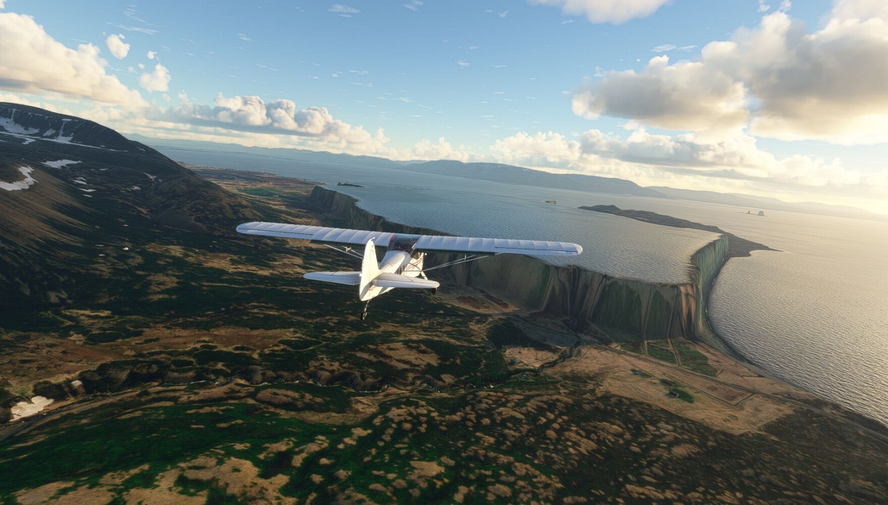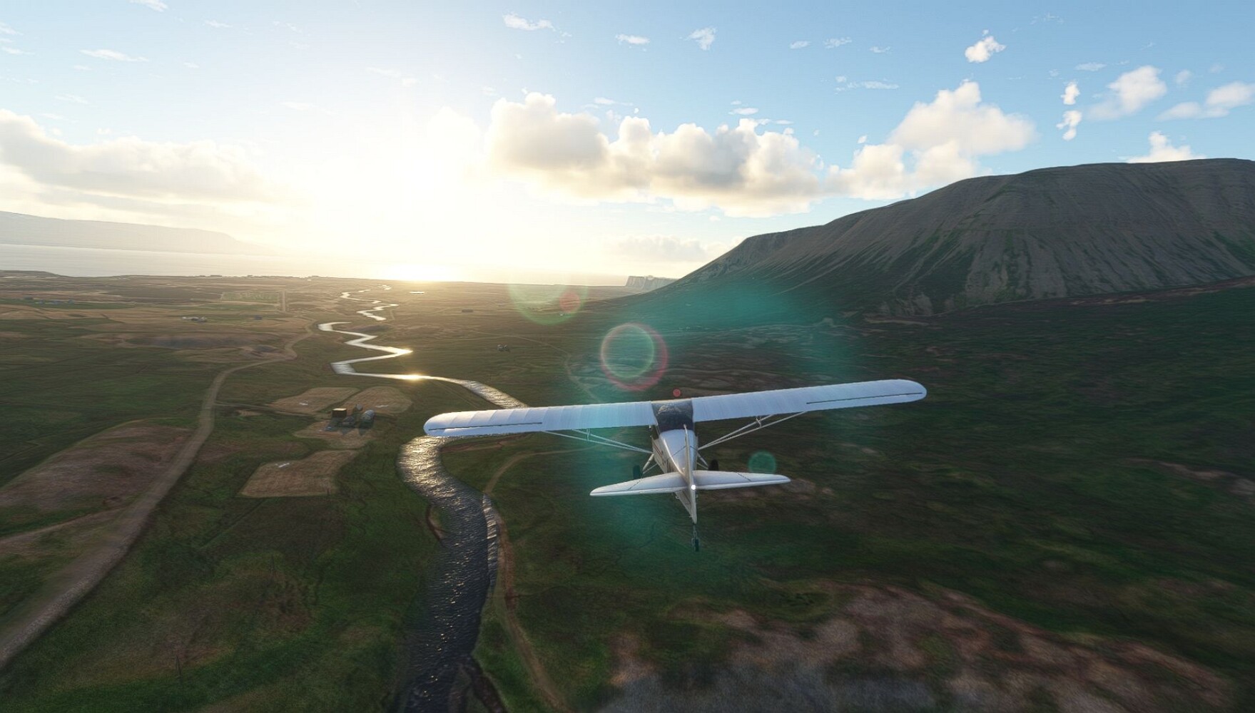 Schon geht wieder in die Lüfte! Siglufjordur Hier fehlen mal wieder die Luftbilder, die KI hat ein Pflaster drauf geklebt. Noch ein Turm? Ne wieder eine KI-Bau am Hang :-) Aber hier: die 54. Das ist der Saudanes Leuchtturm, das Modell stammt mal wieder nicht von Garf, sondern von Asobo. Auch sehr detailreich. Hier gibts mehr Infos: Link Hier gibts Wolkenbilder am Boden, lässt sich wohl nicht verhindern. Die Bucht von Miklavatn Die vorgelagerten Dünen sperren die Bucht zum Meer. Hier gibt ein bisschen Landwirtschaft. Gewaltige Tafelberge Da scheint die 55 zu kommen! Der Leuchtturm Straumnesviti. Ein ungewöhnliches Leuchtfeuer. Windumtoste Landzunge Weiter gings zur vorgelagerten Insel Málmey, da soll es auch ein Leuchtfeuer geben. Da ist es, die 56. Die Insel ist unbewohnt. Wieder ein altbekanntes Modell, Eingang zur Seeseite. Wenig Infos zu finden. Hier gibts was: Link Eine letzte Schleife Links eine beeindruckendes Steinmeer, rechts ein Meshfehler. Eieieiei, unschön! Heukugeln wie überall Die Piste ist schwer zu finden, bin im Anflug auf Stóragerdi (BI51). Wohl eine Schafzähl- und sortieranlage. GEschafft, das Wetter wurde wüster. So viel für heute. Teil 11Teil 13