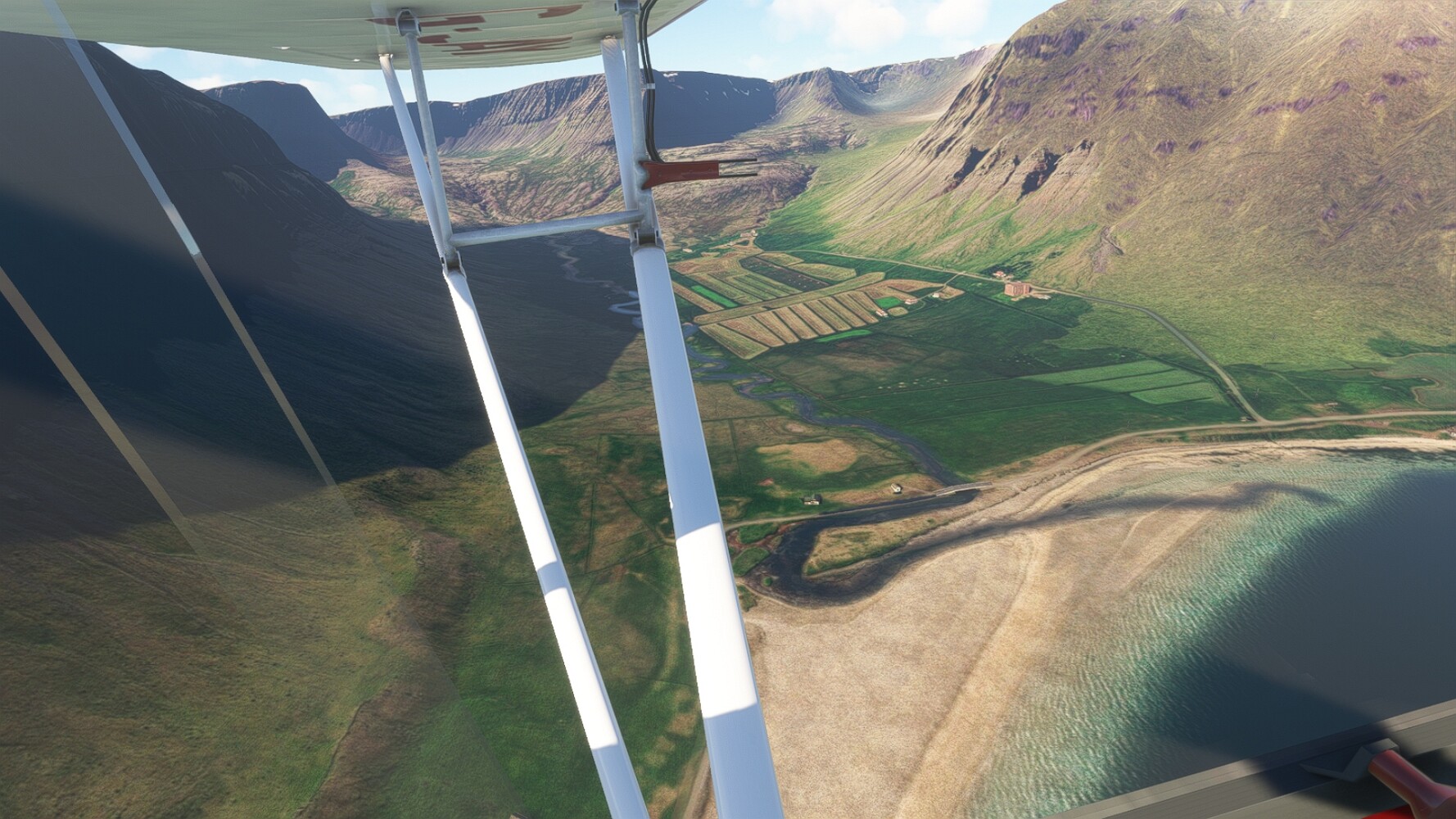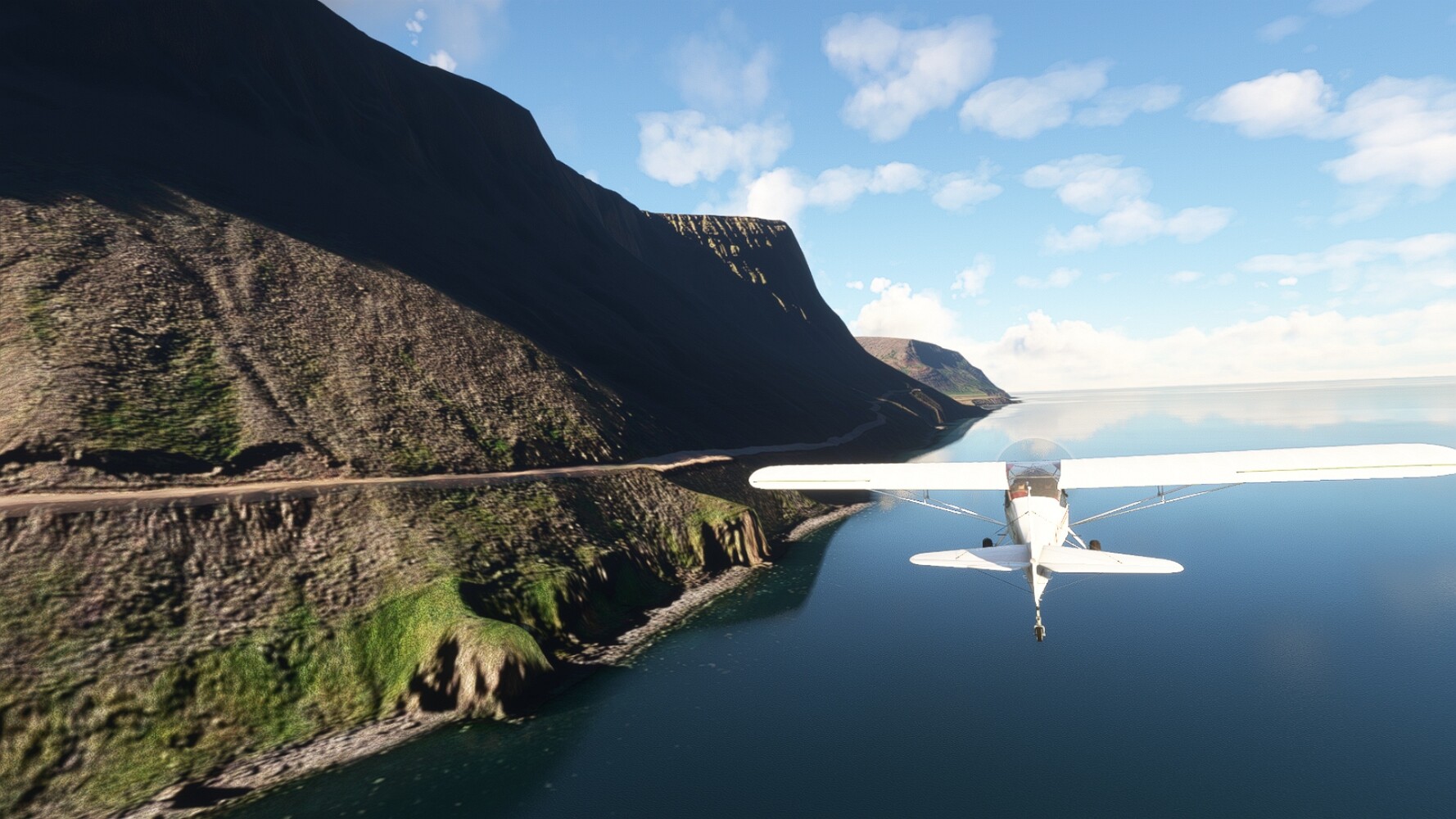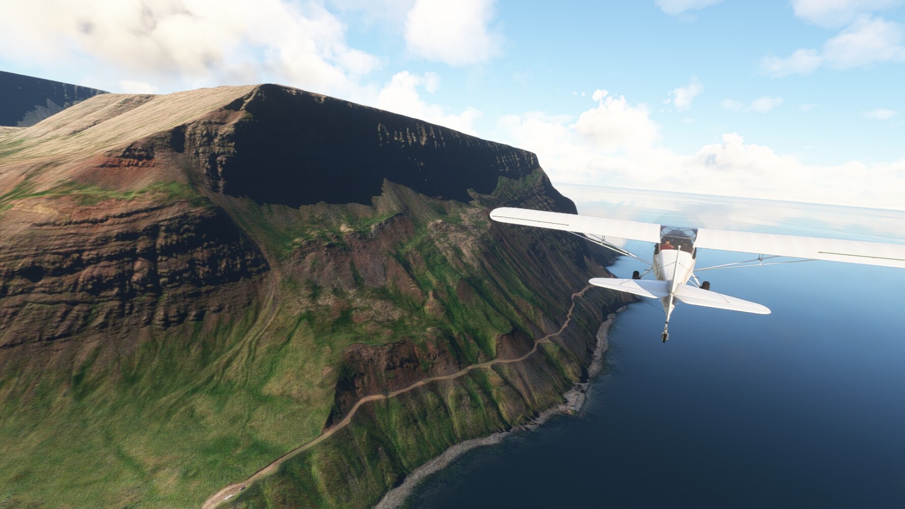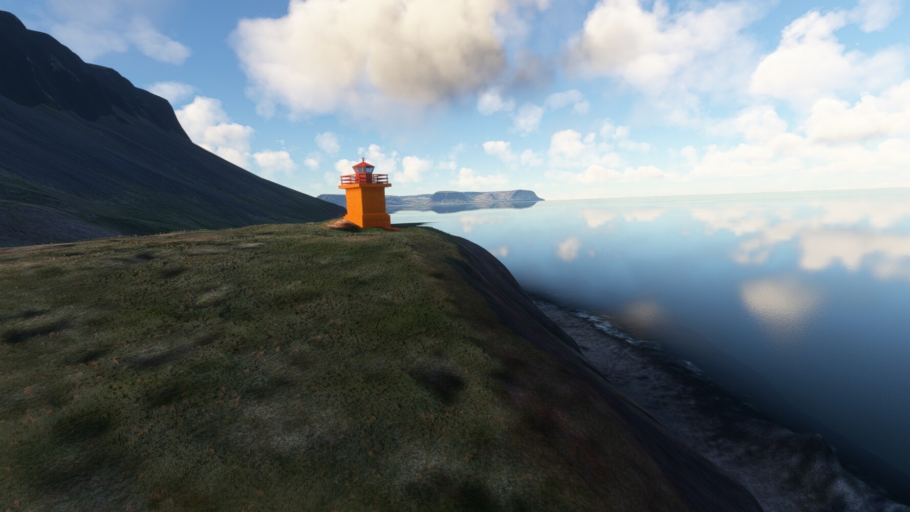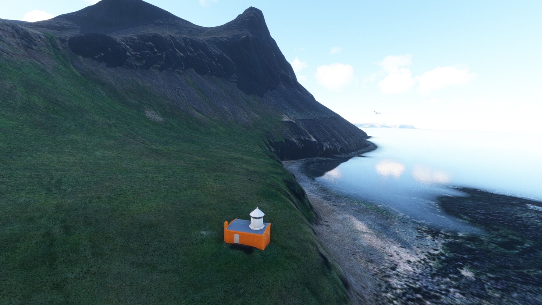 Und wieder ein neuer Flug. Es hat über Nacht geschneit. Richtig was los hier. Weiter gen Westen Hier schlängelt sich eine Pist entlang der steilen Berge Den Arnarfjördur habe ich links liegen gelassen, laut Karte ohne Befeuerung. Der erste Turm des Tages... ist eher ein Türmchen Ólafsviti Klein, hat aber alles was er braucht und trägt die Nummer 70. Hier Trogtäler mit scharfer Abbruchkante. Das Wette spielt heute super mit Irreal Wasserfall Dynjandi, wohl gut besucht. Von hier aus wenig spektakulär Aber die Landschaft der Westfjords ist wirklich großartig. Aber es bleibt einsam. Am Ende der Halbinsel steht das Leuchtfeuer von Langanesviti. Infos Eines dieser merkwürdigen Zwitter. Nummer 71. Blick gen Norden Wirklich großartige Landschaft Und weiße Strände! Was das wohl ist? Kein Katzencopilot mehr Oh, da hab ich wohl was falsch eingestellt! Da kommt die 72! Kópanes Ein Haus mit Aufsatz, sehr ungewöhnlich Trägt meine Nummer 72. Blick gen Süden Hier kürze ich wieder ab und lasse den Fjord links liegen. Patreksfjördur ist das Etappenziel. Queranflug BIPA BIPA sein Code. Teil 17Teil 19