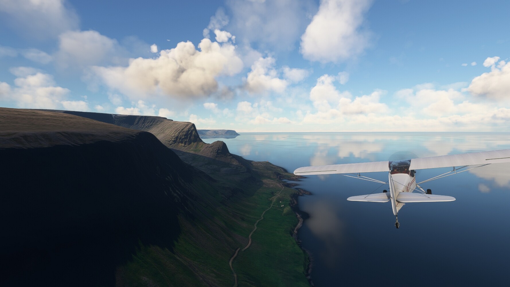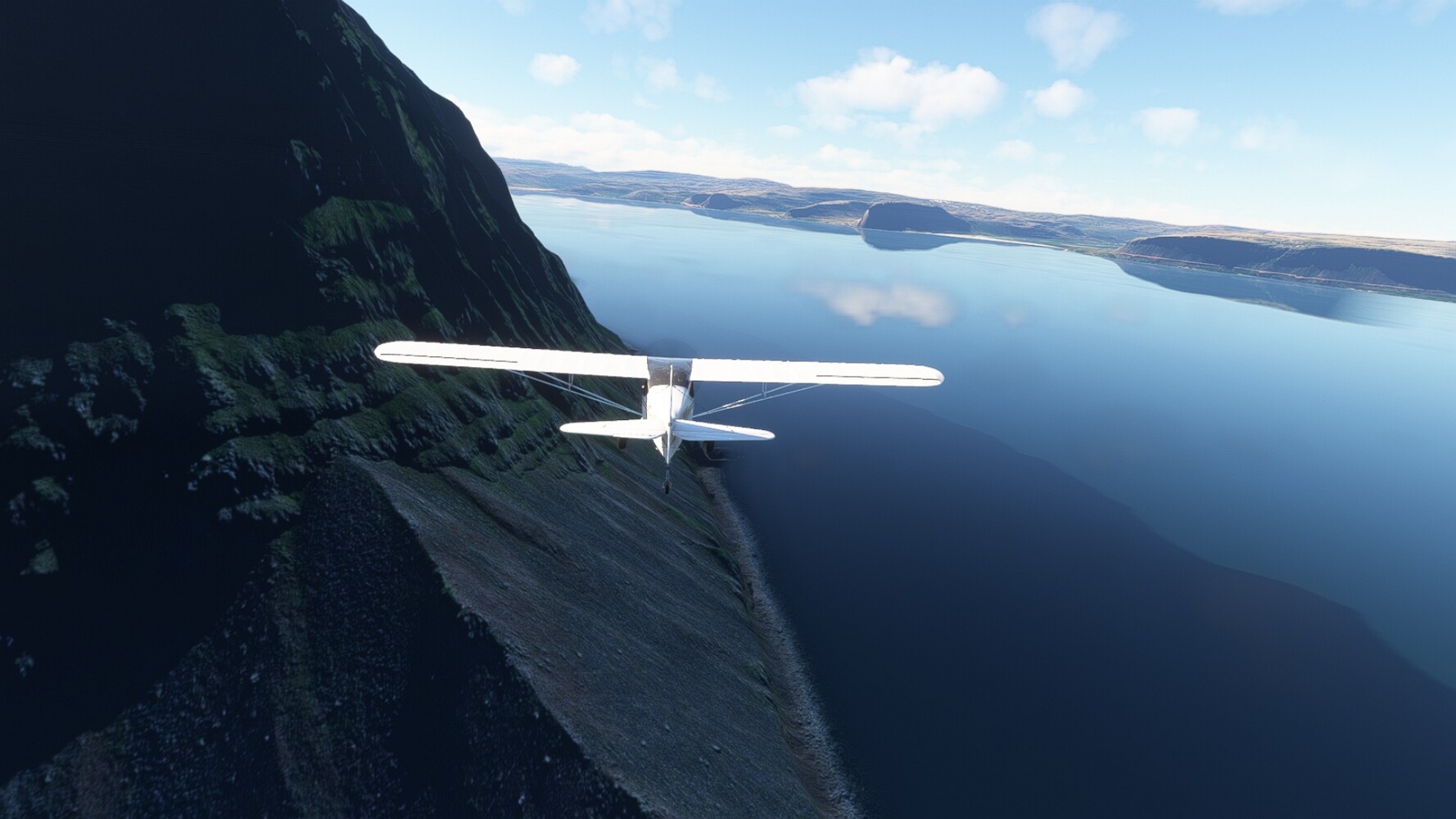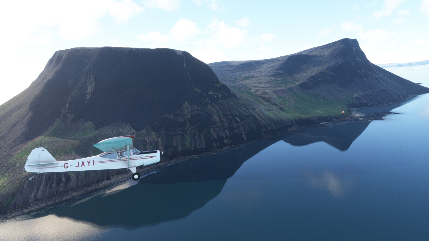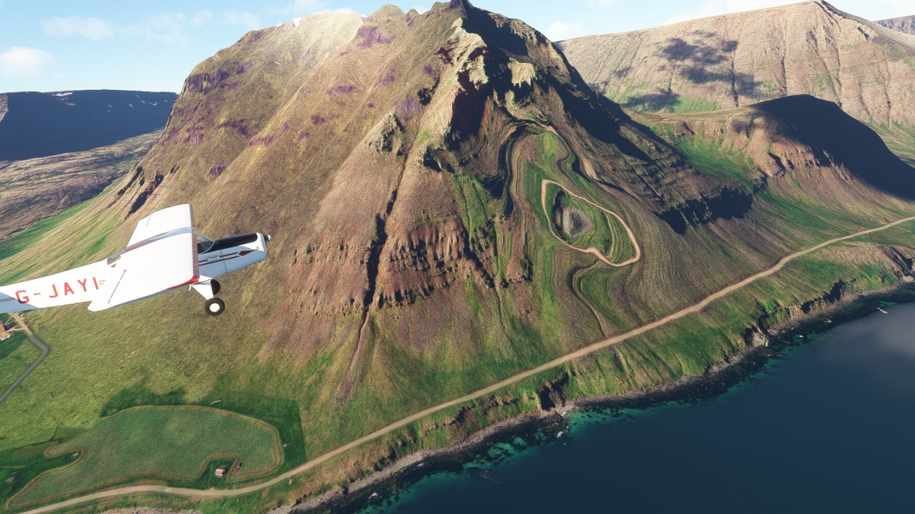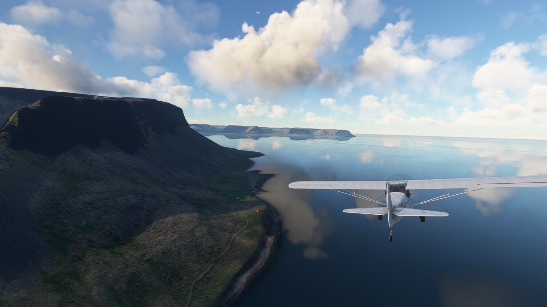 Und wieder ein neuer Flug. Es hat über Nacht geschneit. Richtig was los hier. Weiter gen Westen Hier schlängelt sich eine Pist entlang der steilen Berge Den Arnarfjördur habe ich links liegen gelassen, laut Karte ohne Befeuerung. Der erste Turm des Tages... ist eher ein Türmchen Ólafsviti Klein, hat aber alles was er braucht und trägt die Nummer 70. Hier Trogtäler mit scharfer Abbruchkante. Das Wette spielt heute super mit Irreal Wasserfall Dynjandi, wohl gut besucht. Von hier aus wenig spektakulär Aber die Landschaft der Westfjords ist wirklich großartig. Aber es bleibt einsam. Am Ende der Halbinsel steht das Leuchtfeuer von Langanesviti. Infos Eines dieser merkwürdigen Zwitter. Nummer 71. Blick gen Norden Wirklich großartige Landschaft Und weiße Strände! Was das wohl ist? Kein Katzencopilot mehr Oh, da hab ich wohl was falsch eingestellt! Da kommt die 72! Kópanes Ein Haus mit Aufsatz, sehr ungewöhnlich Trägt meine Nummer 72. Blick gen Süden Hier kürze ich wieder ab und lasse den Fjord links liegen. Patreksfjördur ist das Etappenziel. Queranflug BIPA BIPA sein Code. Teil 17Teil 19