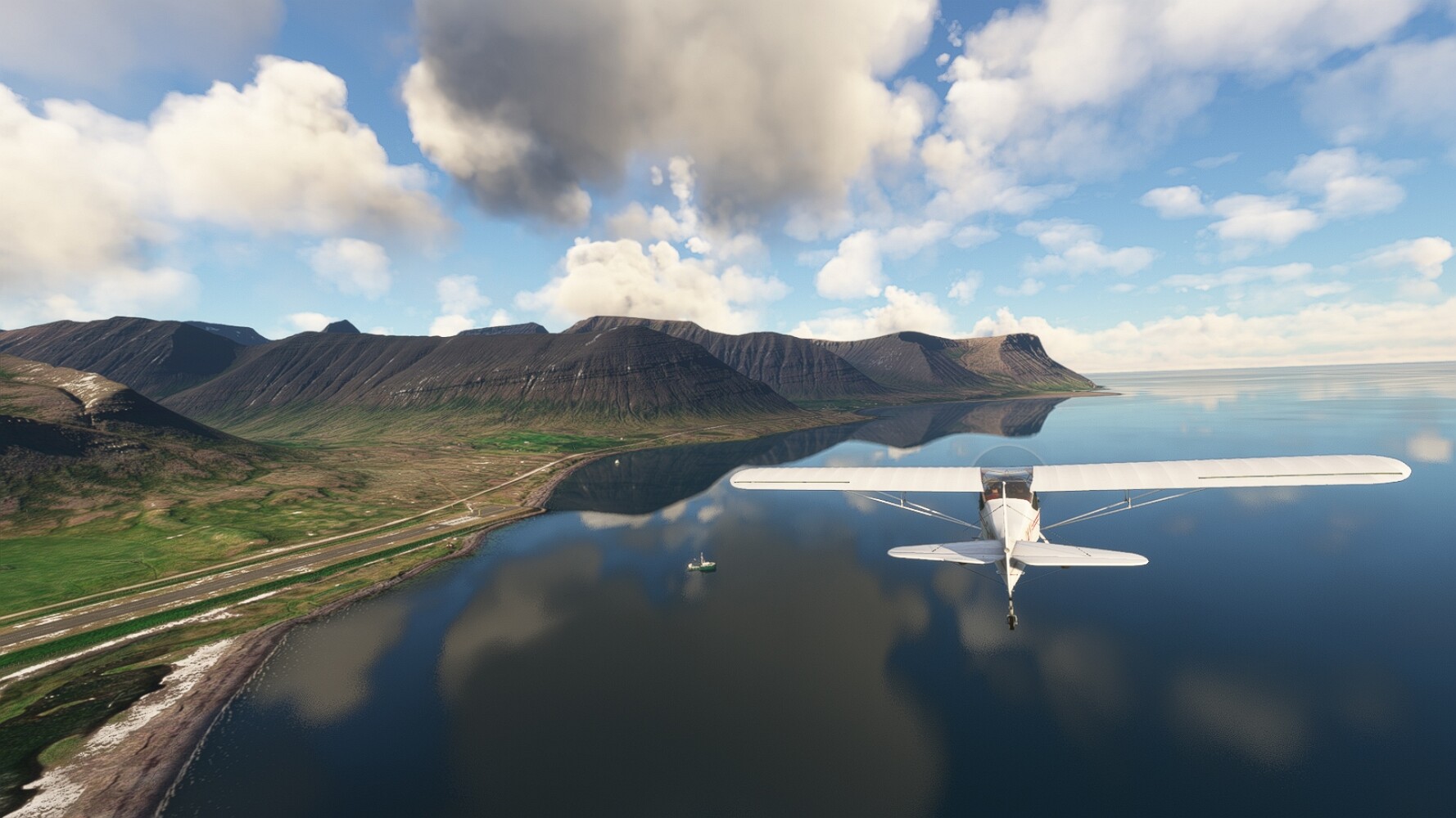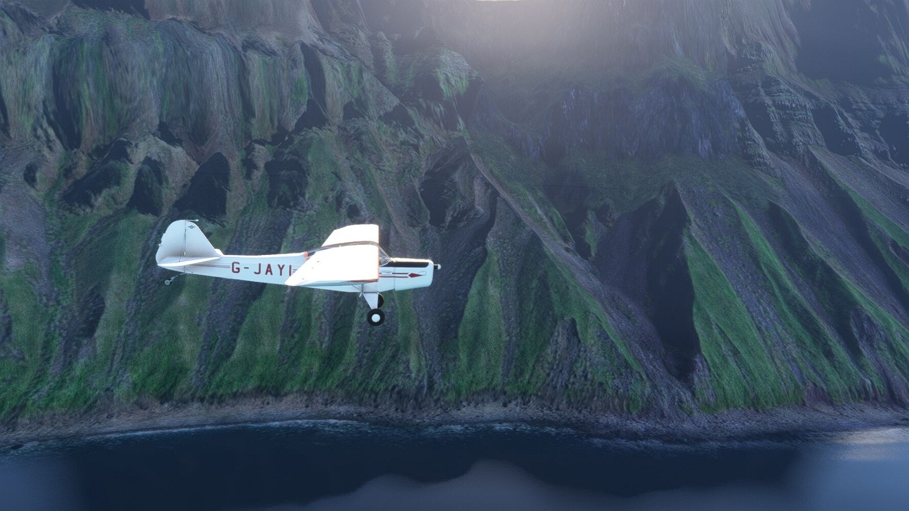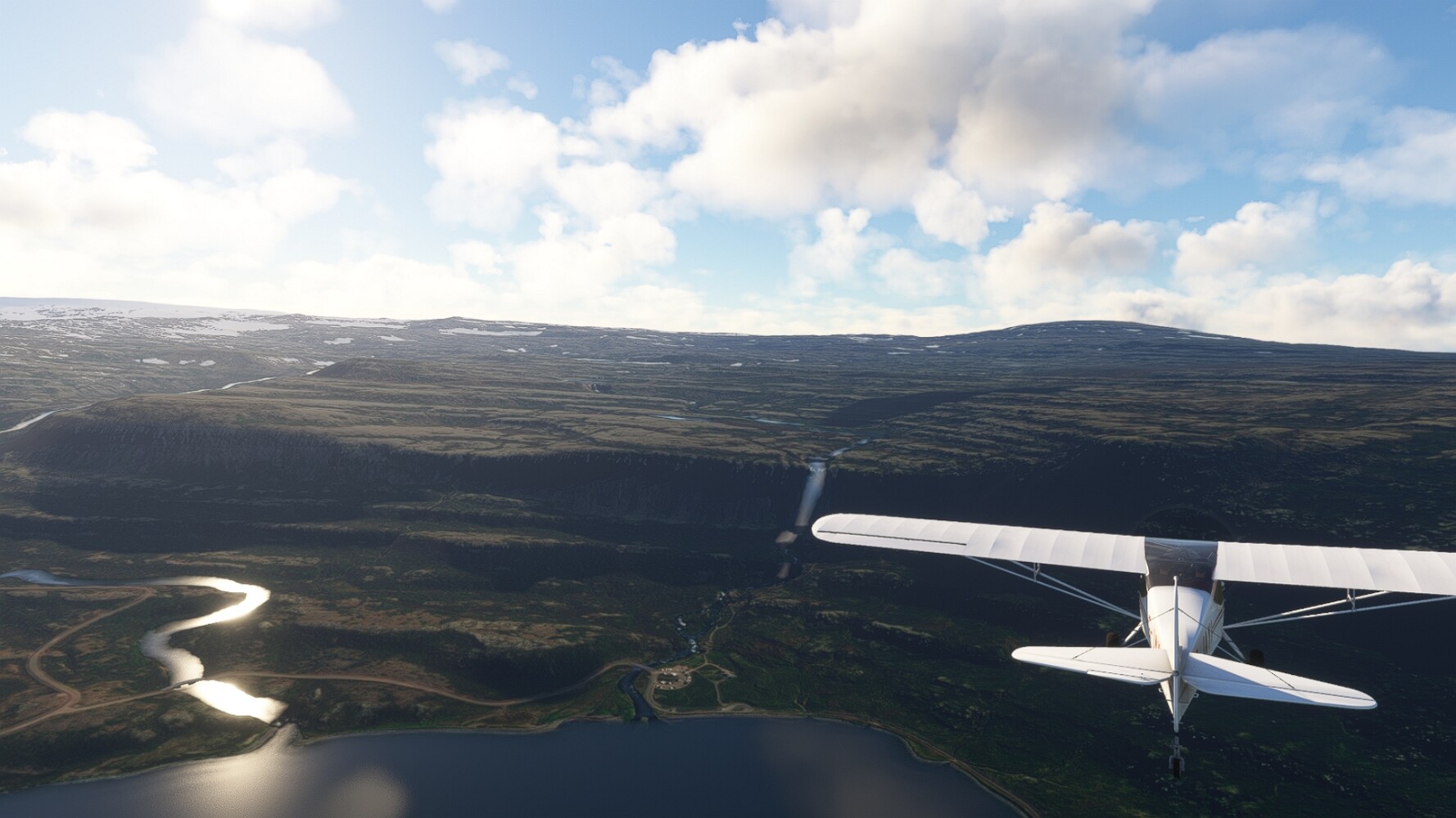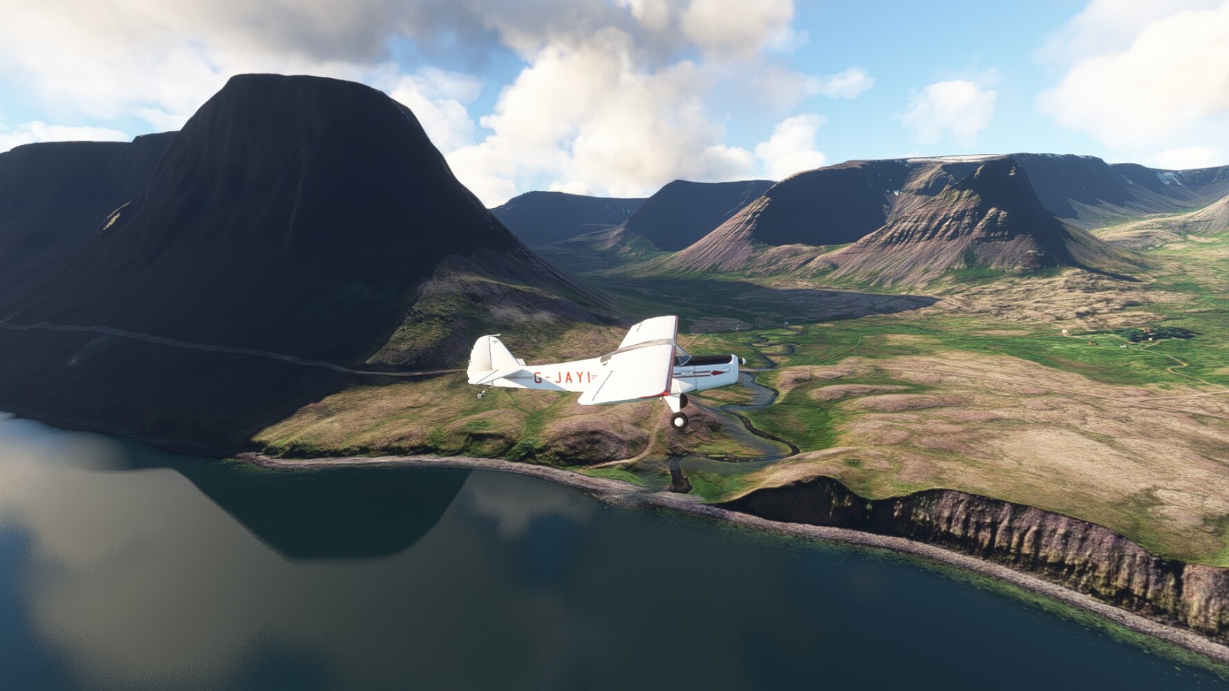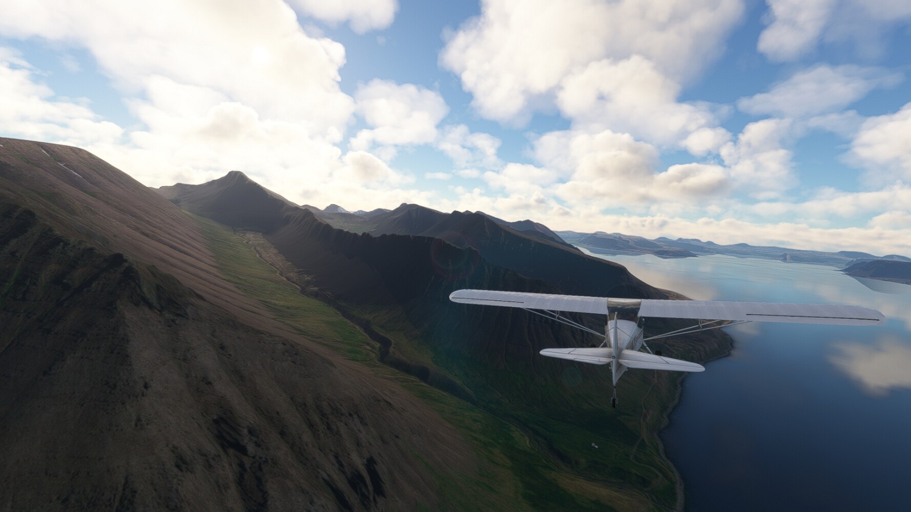 Und wieder ein neuer Flug. Es hat über Nacht geschneit. Richtig was los hier. Weiter gen Westen Hier schlängelt sich eine Pist entlang der steilen Berge Den Arnarfjördur habe ich links liegen gelassen, laut Karte ohne Befeuerung. Der erste Turm des Tages... ist eher ein Türmchen Ólafsviti Klein, hat aber alles was er braucht und trägt die Nummer 70. Hier Trogtäler mit scharfer Abbruchkante. Das Wette spielt heute super mit Irreal Wasserfall Dynjandi, wohl gut besucht. Von hier aus wenig spektakulär Aber die Landschaft der Westfjords ist wirklich großartig. Aber es bleibt einsam. Am Ende der Halbinsel steht das Leuchtfeuer von Langanesviti. Infos Eines dieser merkwürdigen Zwitter. Nummer 71. Blick gen Norden Wirklich großartige Landschaft Und weiße Strände! Was das wohl ist? Kein Katzencopilot mehr Oh, da hab ich wohl was falsch eingestellt! Da kommt die 72! Kópanes Ein Haus mit Aufsatz, sehr ungewöhnlich Trägt meine Nummer 72. Blick gen Süden Hier kürze ich wieder ab und lasse den Fjord links liegen. Patreksfjördur ist das Etappenziel. Queranflug BIPA BIPA sein Code. Teil 17Teil 19