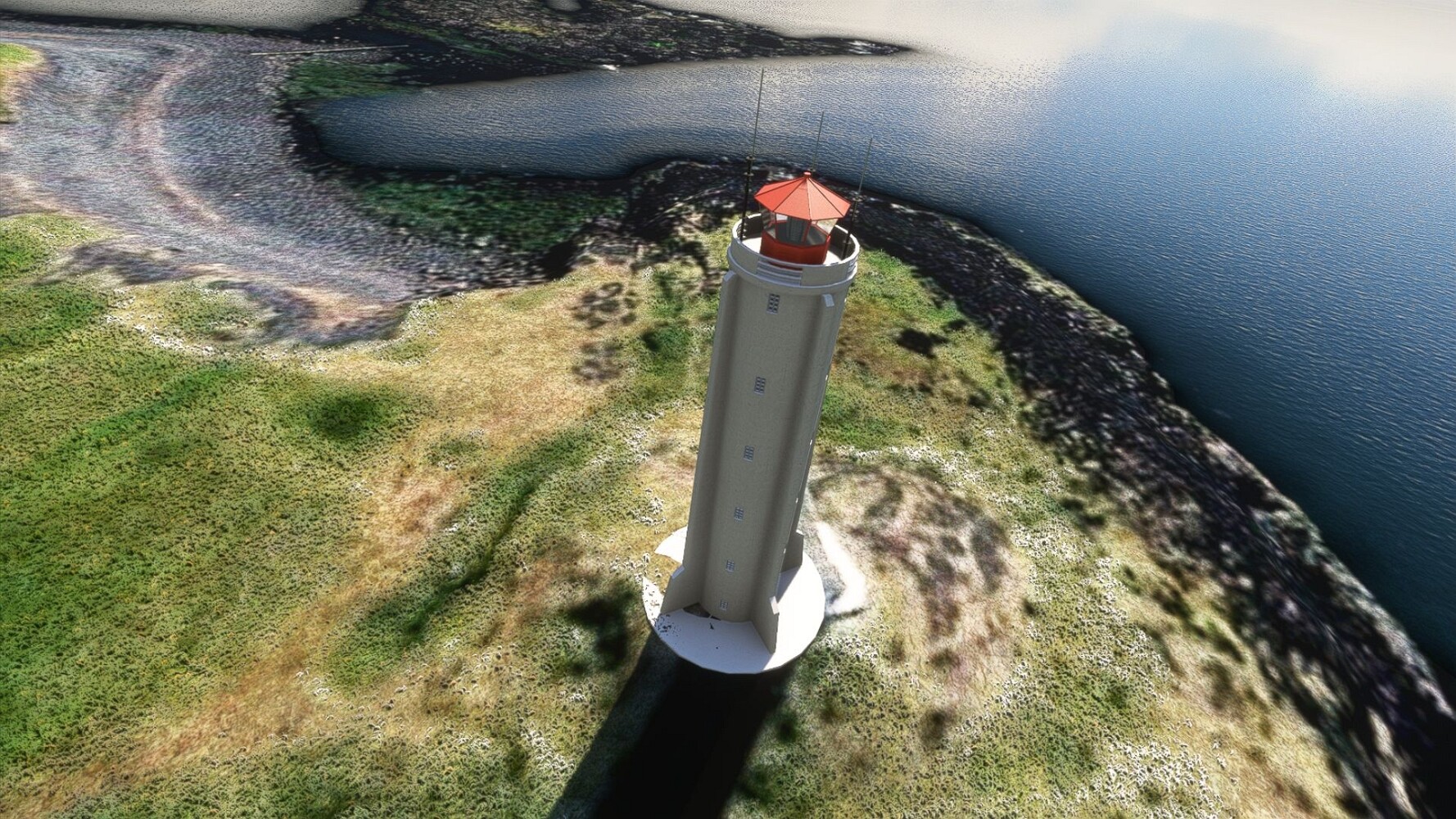 Heute gehts etwas länger in die Luft. Hier schieben sich wieder hohe Berge bis an die Küste. Das müsste Grundarfjödur sein. Falsch, es ist Ólafsvík, hier müssten eigentlich zwei Leuchtfeuer die Hafeneinfahrt markieren, sind aber nicht zu finden. Da ist die 79 zu sehen, der Leuchtturm von Krossnes Ein Standardmodell? Unbedingt! Alles dabei, was dabei sein sollte. Strom kommt von weit her. Lagune von Lárvadall Noch eine Lagune, die von Bugsvötn. In Ólafsvik gibt einen Miniturm. Na immerhin isser orange gestrichten. Ansonsten gruselig. Die 80. Der Hafen von Taska mit Leuchtfeuer. Oh! Das ist ja mal ganz was neues: ein Stahlturm 81, nennt sich Taska. Solarbestromt.Infos konnte ich nicht finden, nur ein 3D-Modell... Alte Landepisten Fast der westlichste Punkt Islands, aber nur fast. Dor steht ein kleiner Turm, der von Öndverdarnes. Die 82. Echte Besonderheit: Großer quadratischer eingeschossiger Sockelbau mit aufgesetzter Laterne. Hier der Blick gen Norden. Gen Süden ist nicht weit entfernt schon der nächste Turm auszumachen: Svörtuloft Und in meiner Zählung die 83. Stehen ja mächtig nahe zusammen. Dreigeschossiger Turm in wohlbekannter Ausformung. Zwei auf einen Blick. Weiter gehts, links kamen rote Berge in Sicht. Da musste ich mal nachsehen. Wunderbar! Zurück an die Küste zur 84: Malarrifsviti, im Vordergrund die Felsen von Lóndrangar Öndverdarnes Und da verläuft auch die Stromleitung. Und weiter... Mal wieder Traffic... Es folgt ein unscheinbares Türmchen, die 85. Sein Name ist Kirkjuhóll, Keine Schönheit... aber eine Besonderheit. Grau, etwas höher als die ähnlichen Stummeltüme Und mit Farbiger Abklebung um die Befeuerung eindeutig zu machen. Steht irgendwie im Nirdendwo. Und hier kommt die 86, Arnarstapi Ein kleiner Bruder von der 85... Nur noch reduzirter, erinnert an einen Bunker. Aber immerhin auch mit Buntglas... Ansonsten nix wie weiter... So ein Krater ist auch lohnend! jepp, der Krater nennt sich Eldborg. Und wieder lockt rote Erde... Grandioses Lavafeld Und hier ist das Ziel: Flugplatz Kaldármelar BIKA Toller Bergblick Teil 20Teil 22